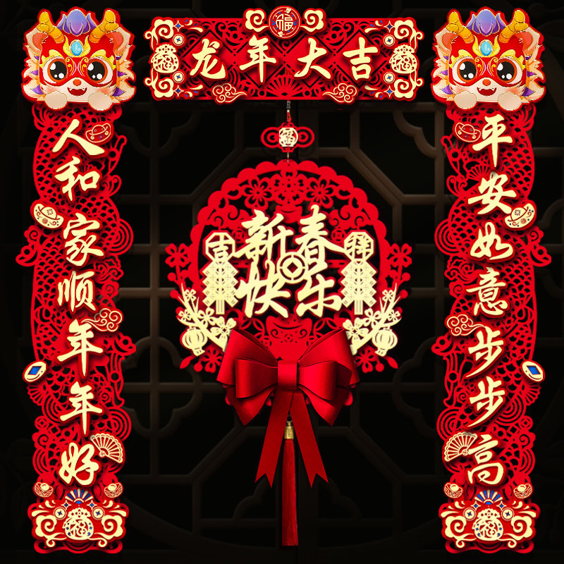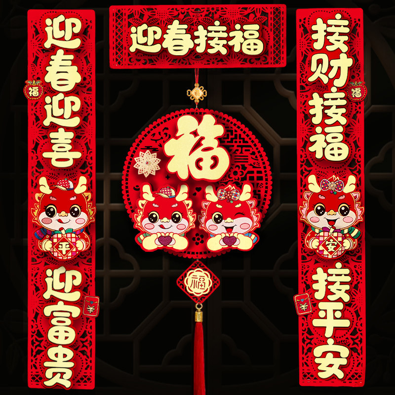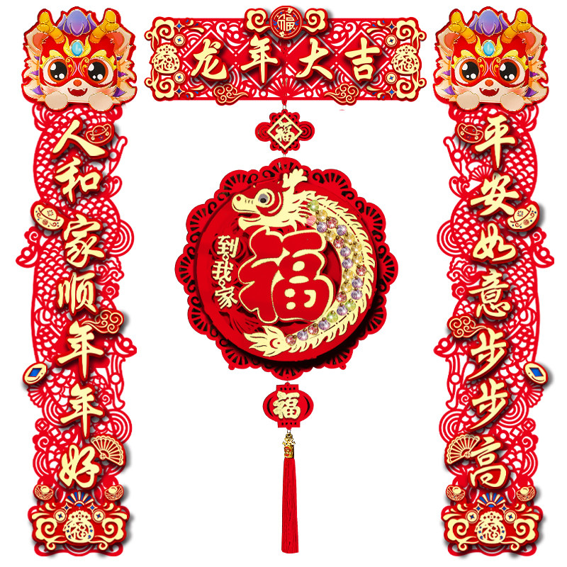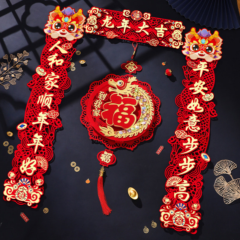 Couplets for the New Year Spring Festival gate of the New Year of the 2024 New Year 2024 New Year Spring Festival Flocking Cloth Fu Characters Magnetic Spring Couplets-Taobao