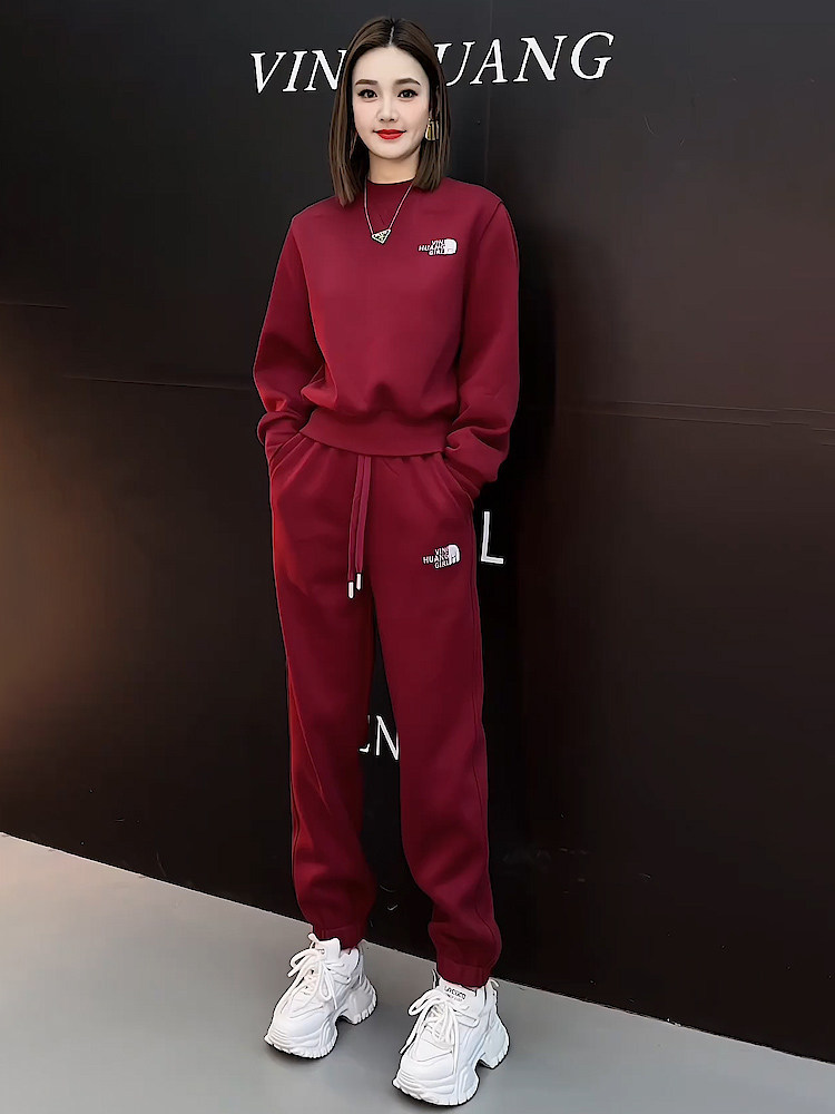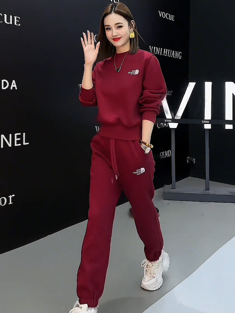 Pop Fashion Casual Sports Suit Women Autumn Winter Minus Age Red Ocean Gas Round Collar Acropolis Wear a whole set of-Taobao