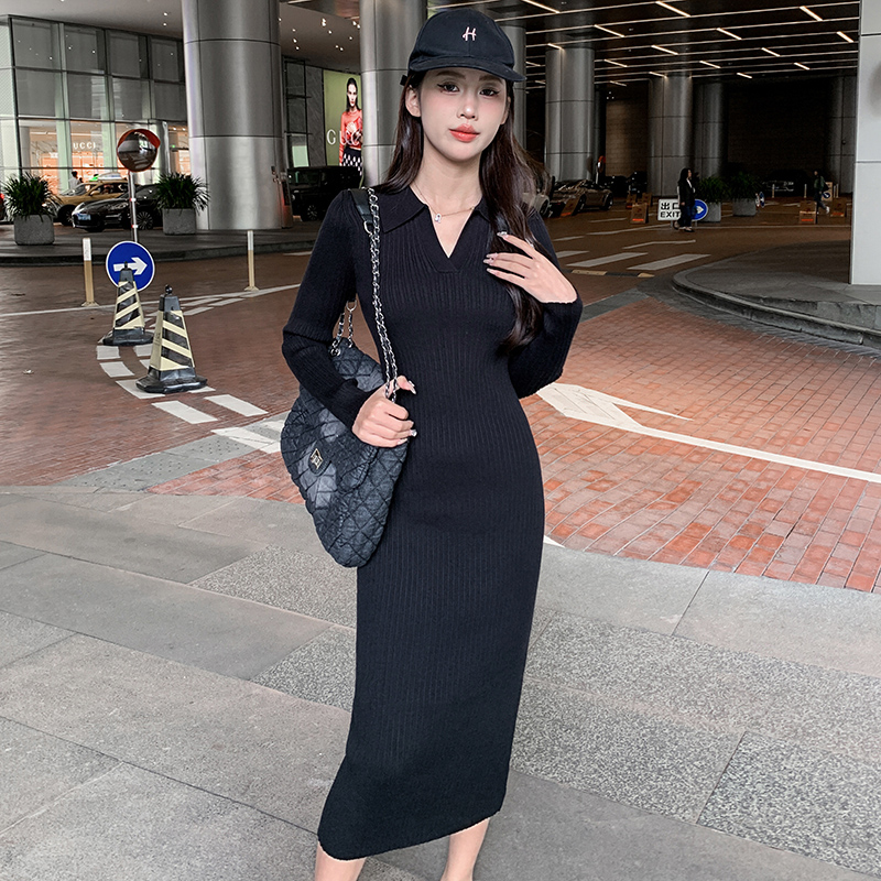 Black Knit One-piece Dress Autumn Winter 2023 New Tight Wrap Hip Skirt Long Inside Hitch Underskirt Winter Sweater Dress-Taobao