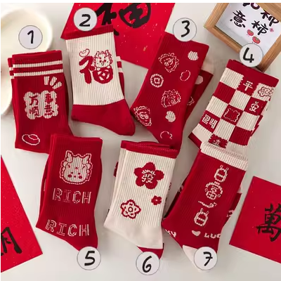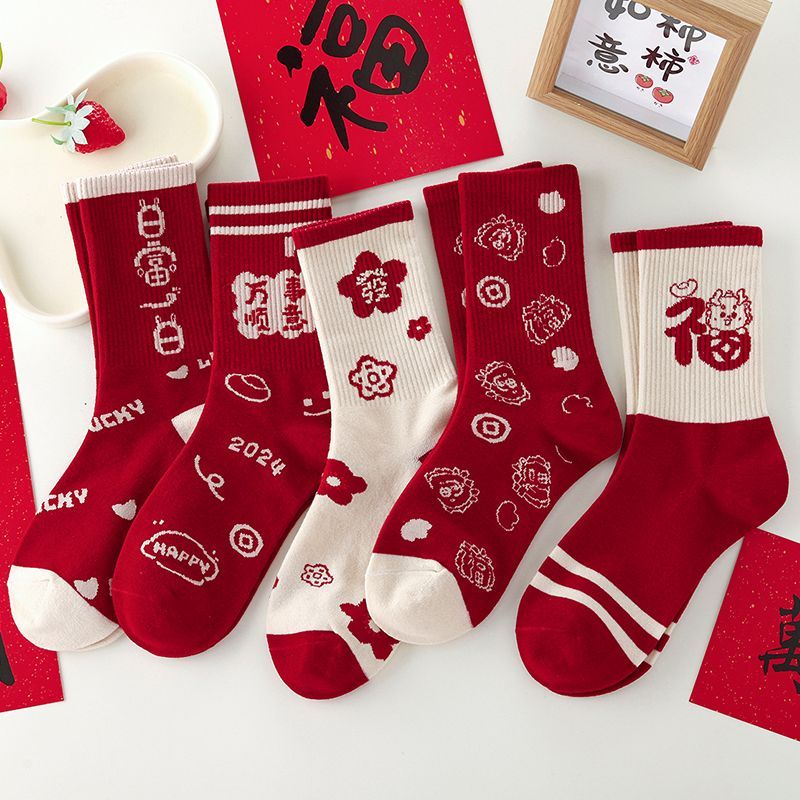 New family red socks autumn winter mid-cylinder thickened raw Shosocks boy girl CUHK boy's life year big red-Taobao