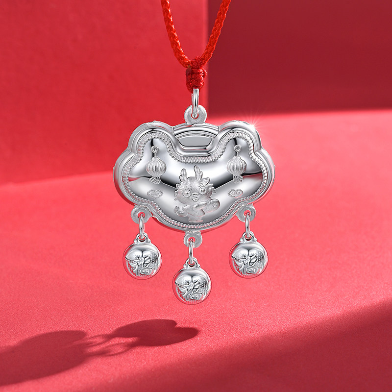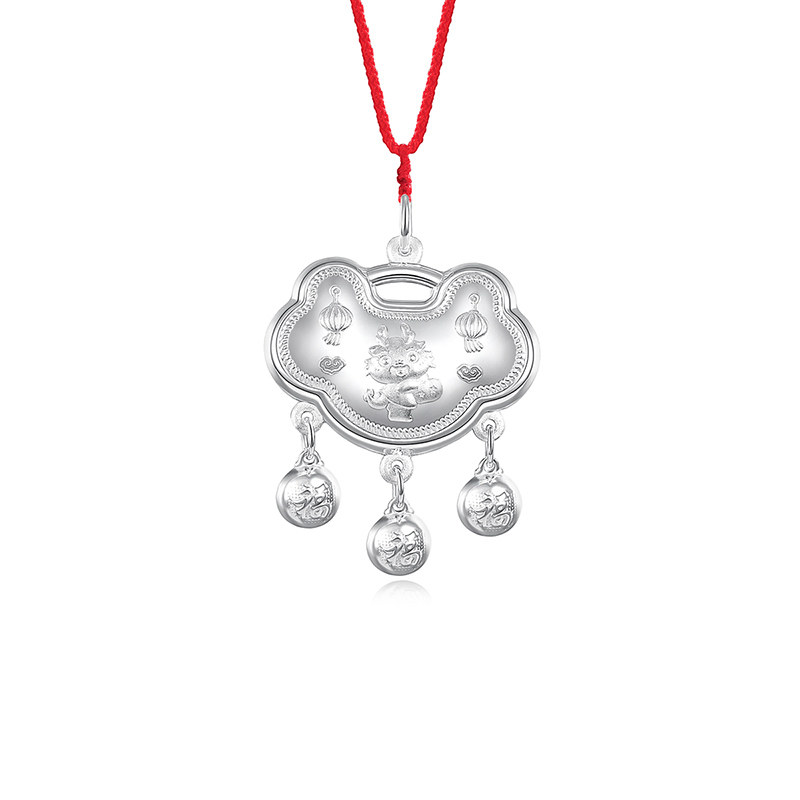 Dream Gold Garden Little Forong Long Life Lock Pendant Pure Silver Bell Lock Bag Foot Silver Zodiac Dragon Hanging Pendant Full Moon Gift Matching Rope-Taobao