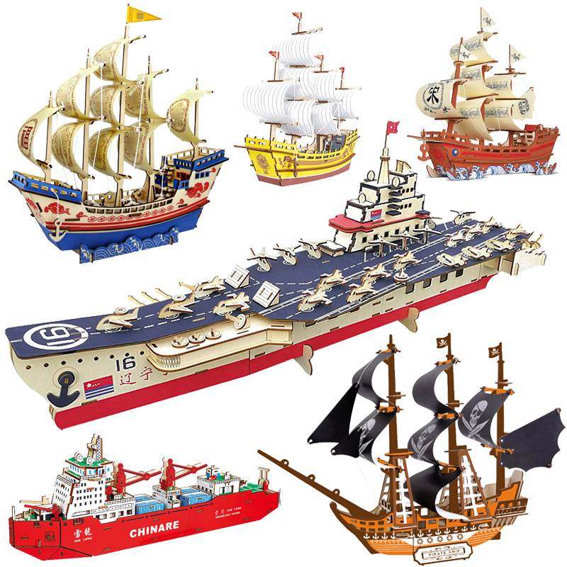 Dragon Boat Model Diy Handmade End of Dragon Boat Wood 3d Cubism Puzzle Children Toy Gift-Taobao