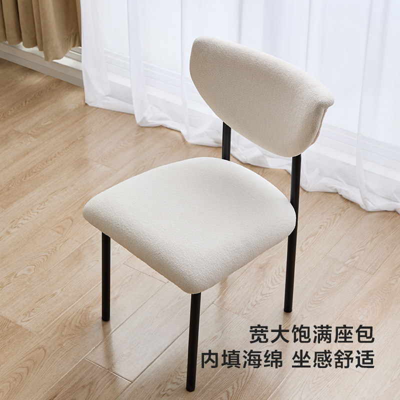 Lin's Home Faffen Cream Wind Lamb Suede Backrest Dining Chair Son Home Advanced Sensation Dining stool Lin's wood industry SV1S-Taobao