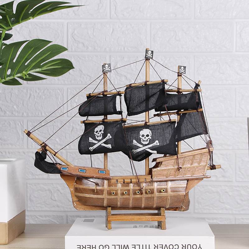 Black Pearl Horn Caribbean Pirate Ship Model Craft Boat Simulation Wooden Boat Real Wood Sailing Retro Swing Piece Gift-Taobao