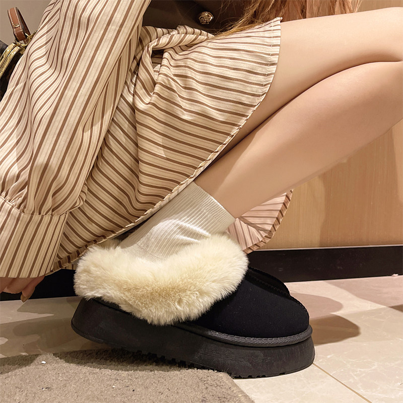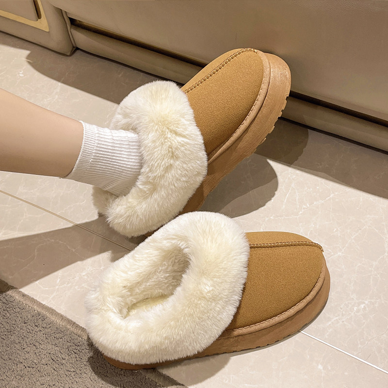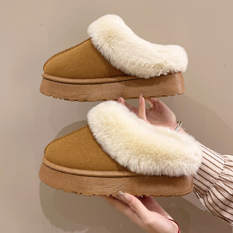 Fur slippers female outside wearing 2023 Winter new fur integrated snow ground boot thick bottom plus suede head cotton slippers-Taobao