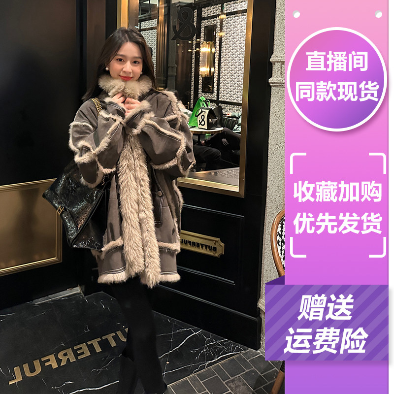 Autumn and winter thick coat splicing 100 hitch fashion casual loose plus suede thickened winter new New Year wardrobes women-Taobao