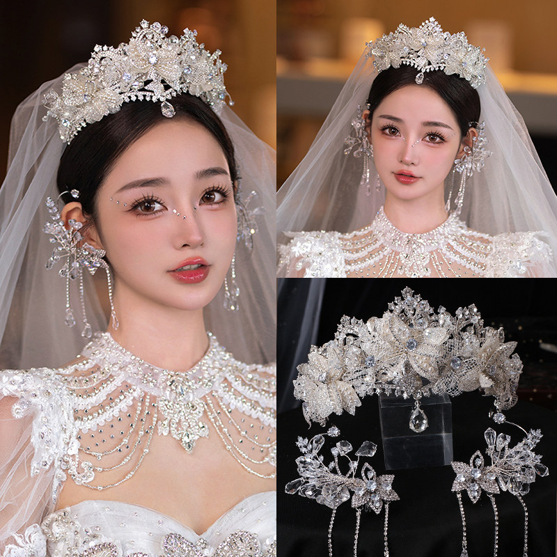 Bride Crown Woman Marries Head Adorned Korean Princess Birthday Hair Accessories Tennis Red Accessories Queen's Head Crown Super Fairy-Taobao