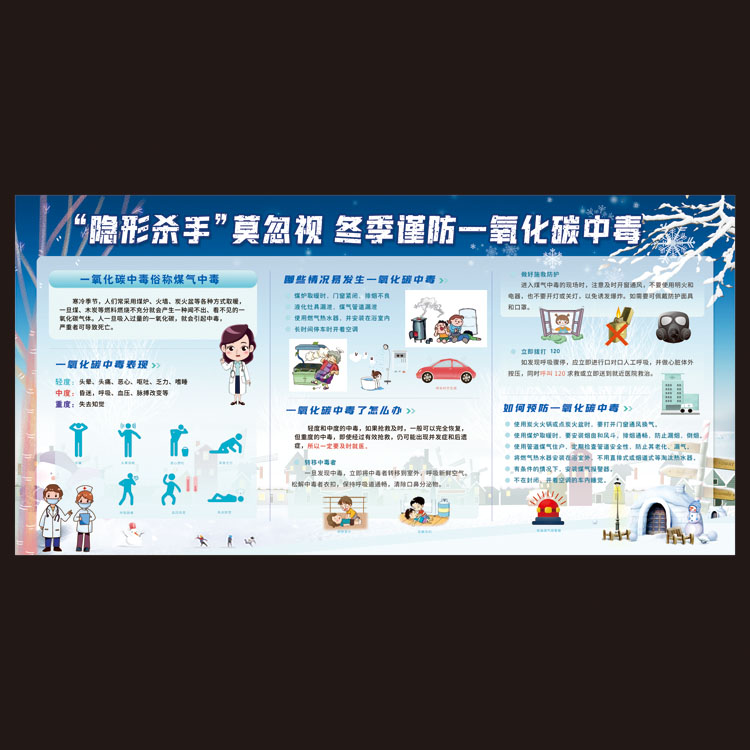 Sky Cold Heating Winter Beware Carbon Monoxide Poisoning Poster Painting School Community Rental House Safety Publicity Bar-Taobao
