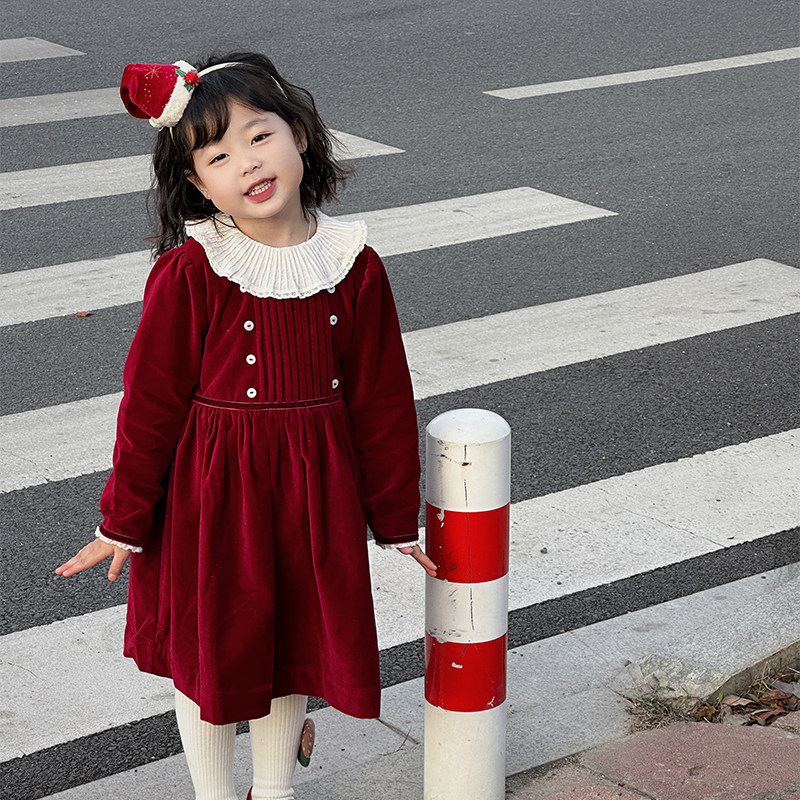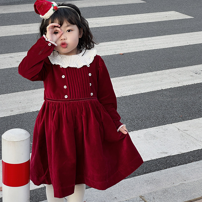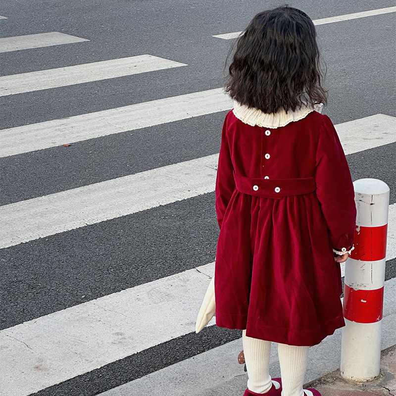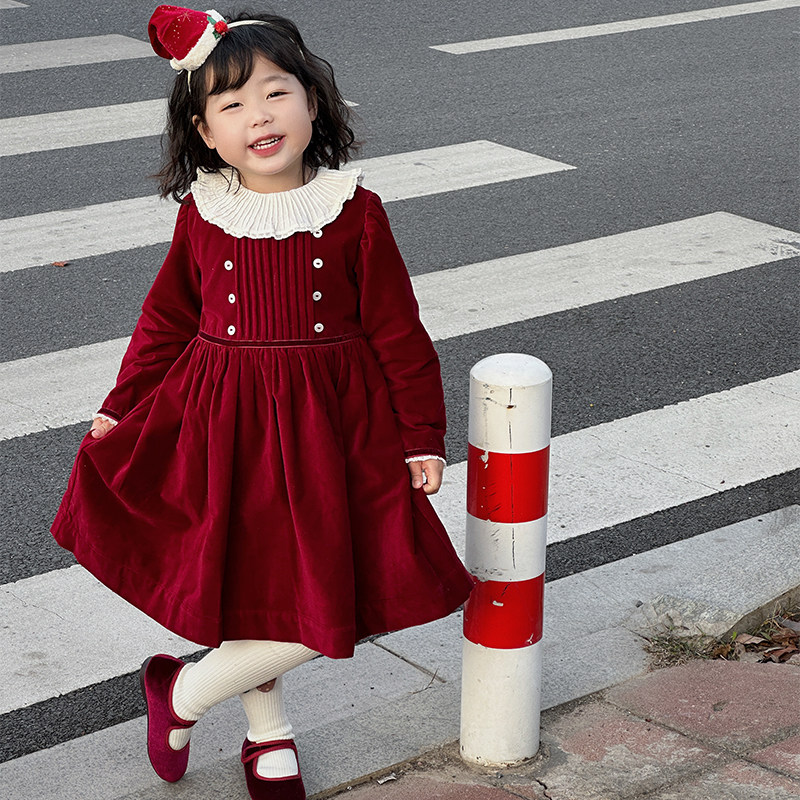 Girl's red dress winter foreign air New Year clothes New Year clothes women's baby Baobao Children's velvet skirt-Taobao