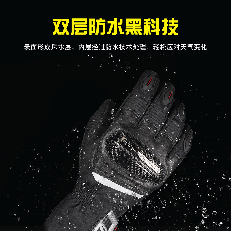 OnesAgain Motorcycle Gloves Winter Riding Warm Plus Suede Long man Carbon fiber locomotive waterproof touch screen-Taobao