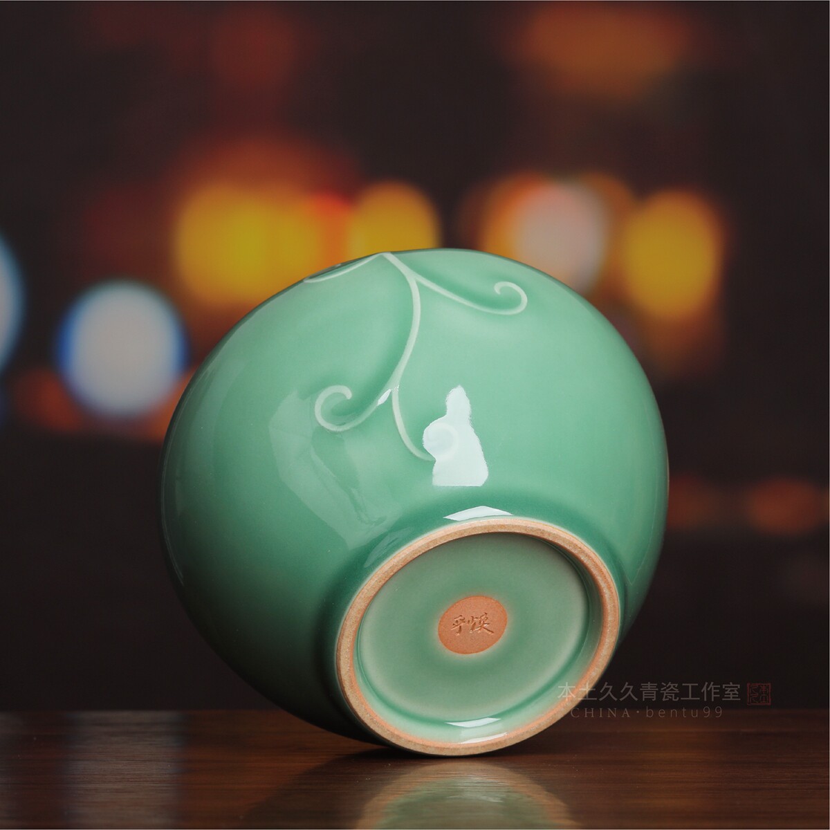 Yan Shaoying handmade one-hand, one-branch cover pot Longquan porcelain ceramic ware in the home living room with plum green tea leaf jar-Taobao