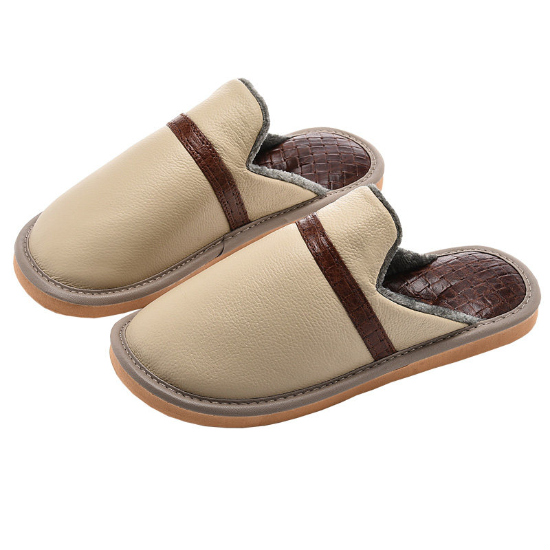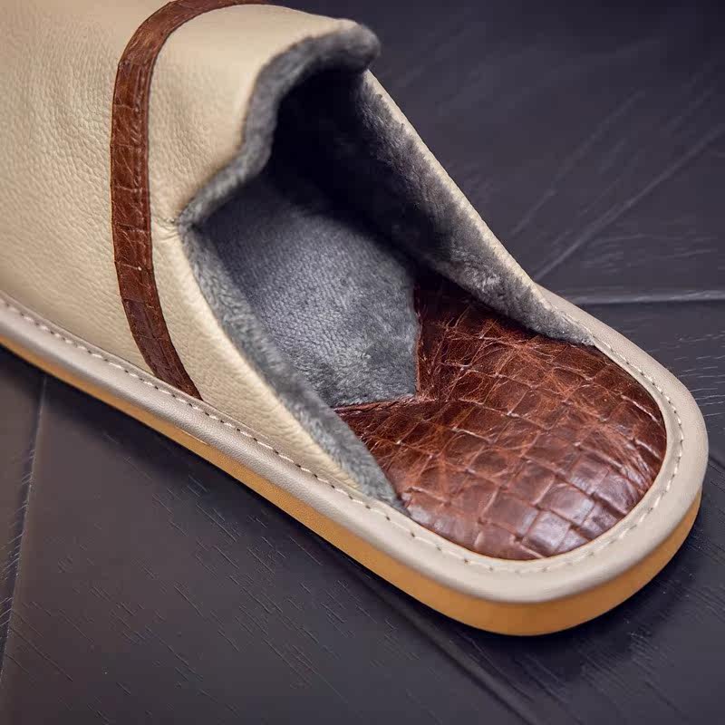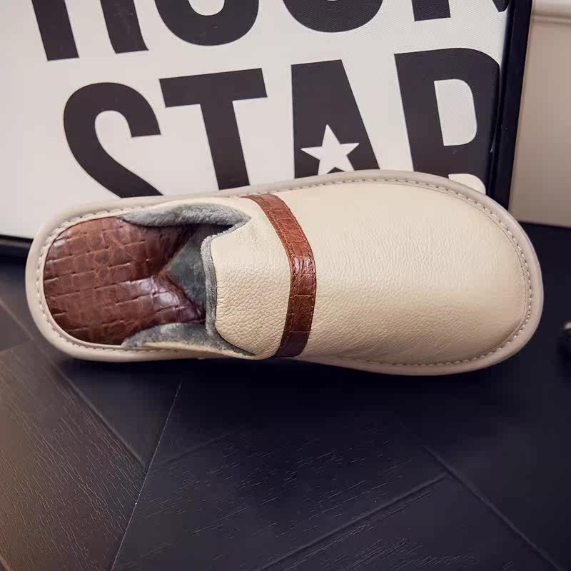 Tide Card Cotton Slippers Men 2023 Autumn Winter New Home Non-slip Home Warm Thick Bottom Waterproof Genuine Leather Couple Cotton Shoes-Taobao