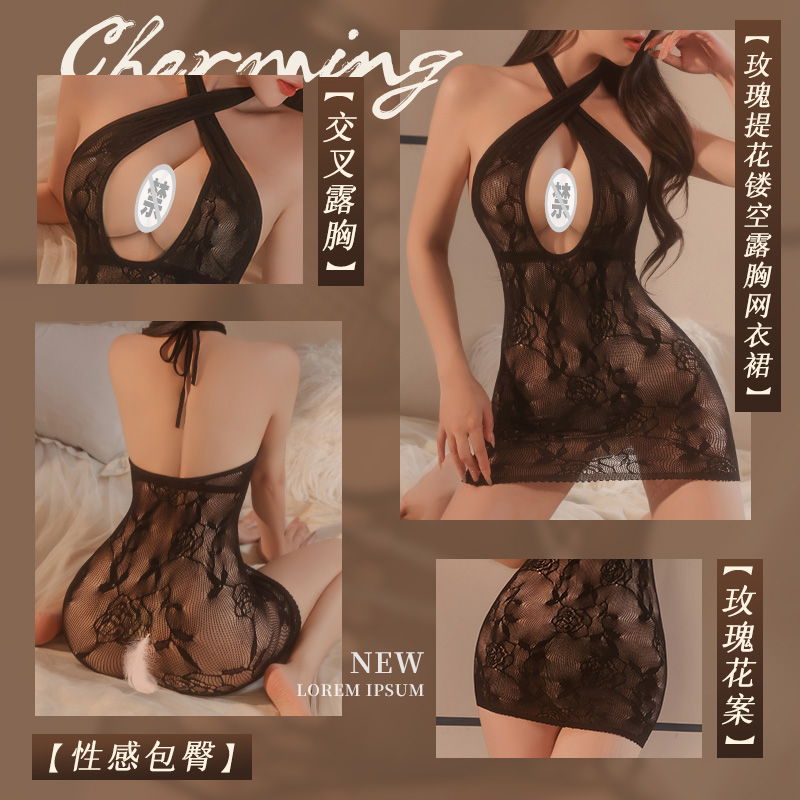 Rose Jacquard Hollowed-out Chest Mesh Dress