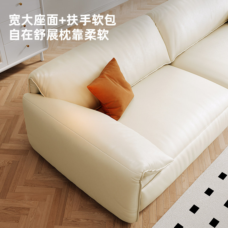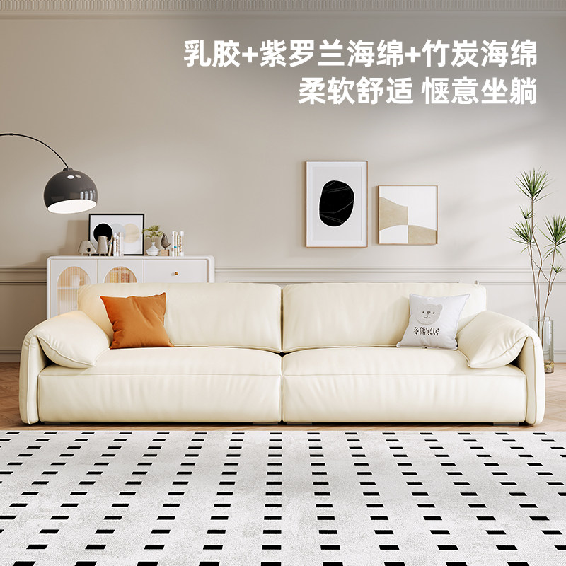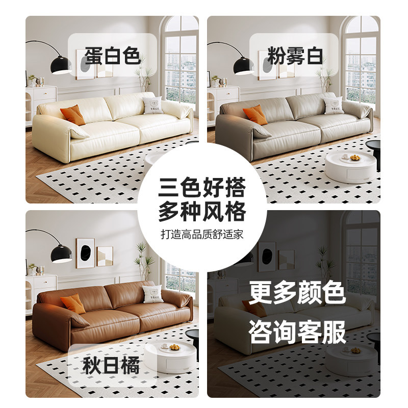 Winter Bear Elephant Ears Soft-style Cream Wind Modern Light Lavish Real Leather Sofa Living Room Straight Rows Large Sitting Deep Sofa-Taobao