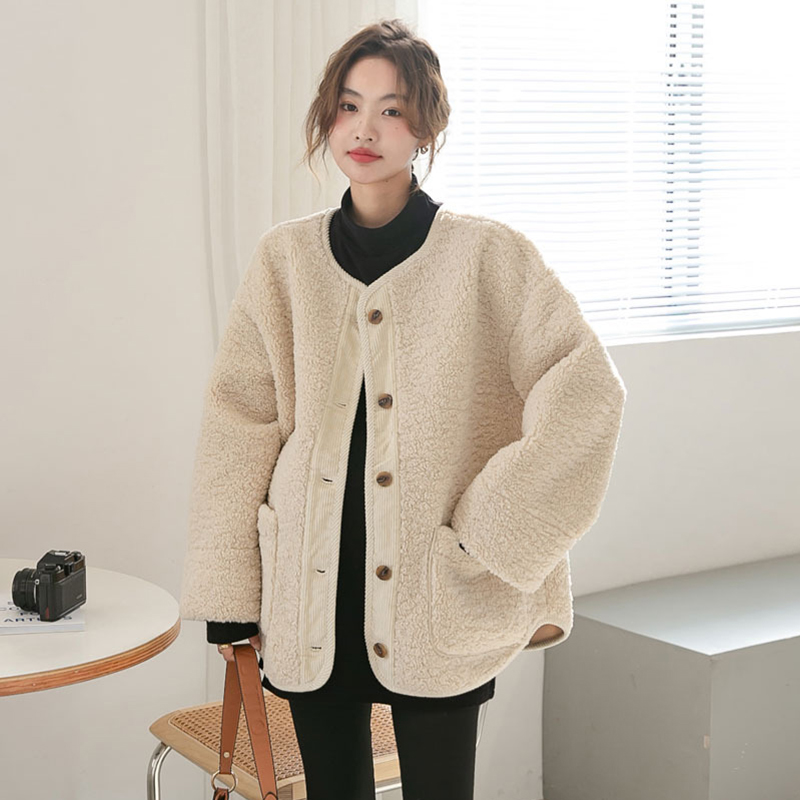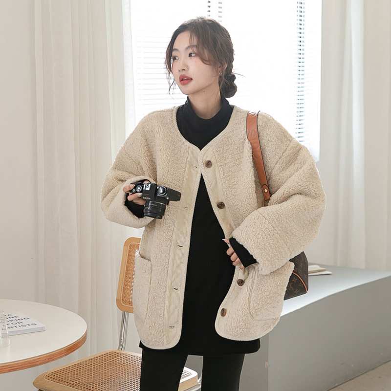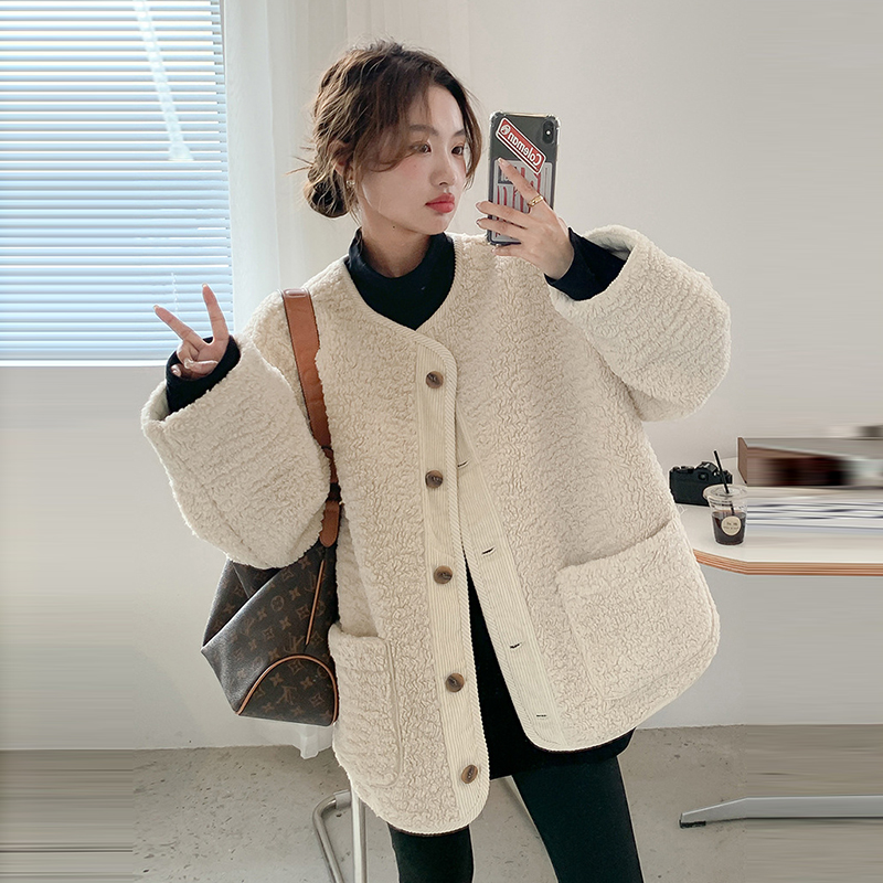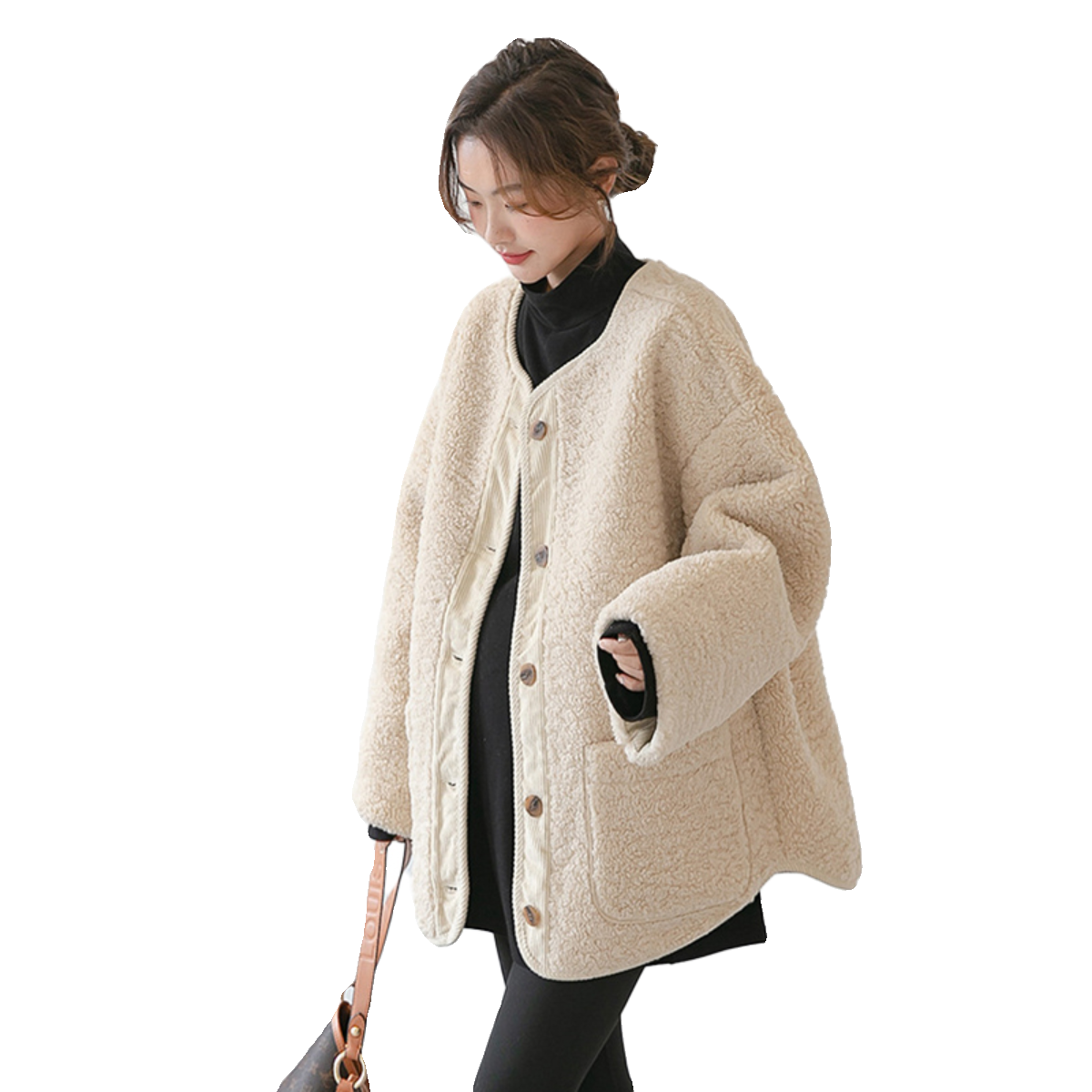 MAMI High-end pregnant woman lamb fur coat autumn winter 2023 new loose woman 100 lap thickened pregnant woman blouses winter-Taobao