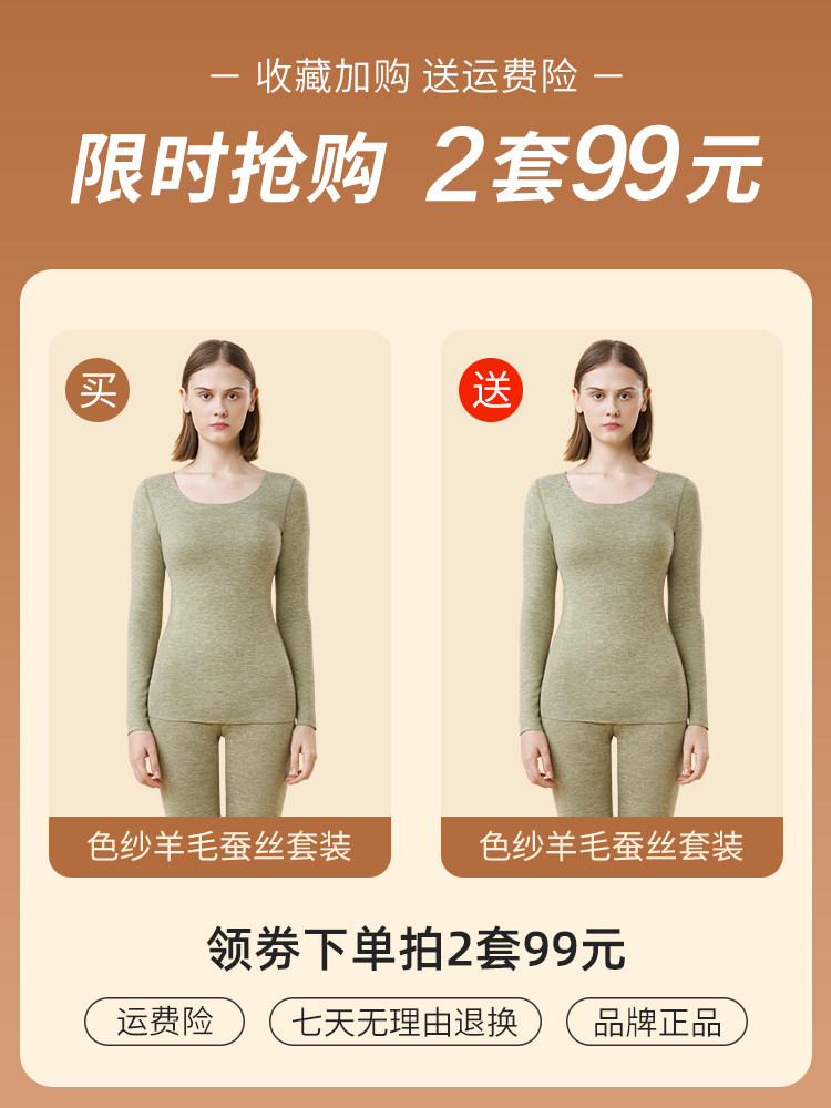 Duvet Warm Underwear Women's Autumn Clothes Autumn Pants Suit No-Mark Heat Beating Undershirt Plus Suede Thickened Wool Silk Winter-Taobao