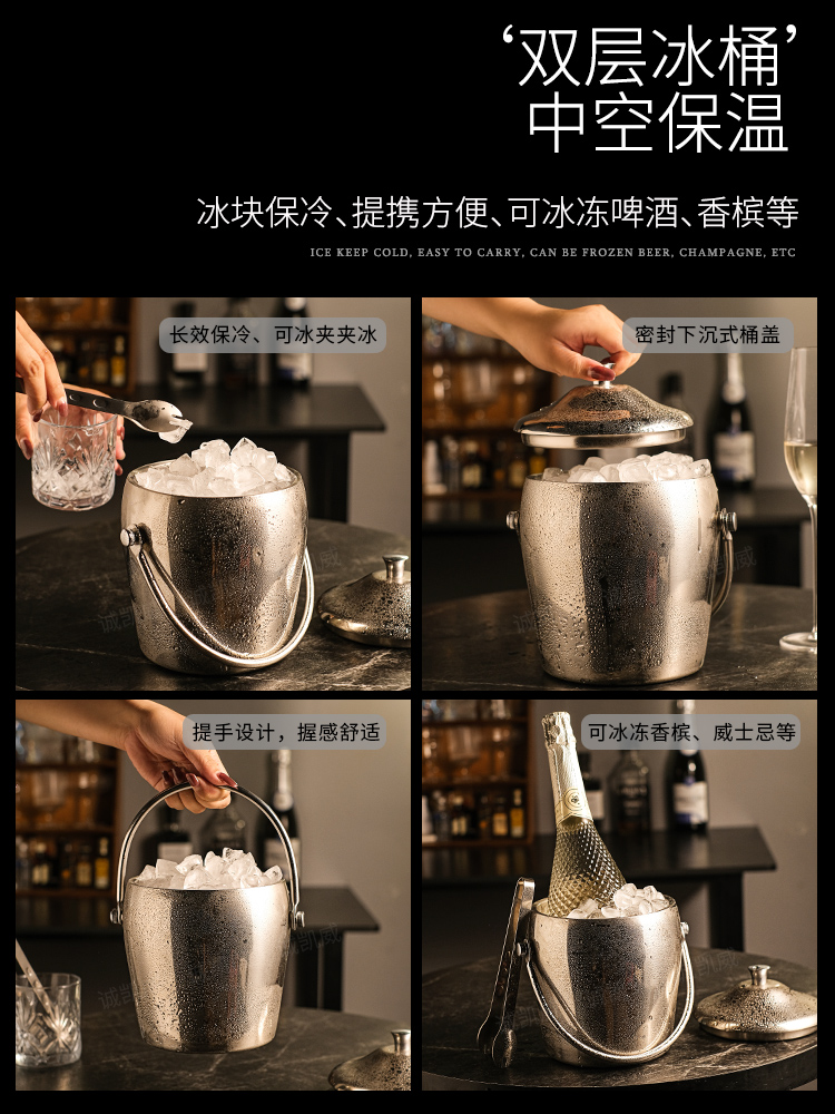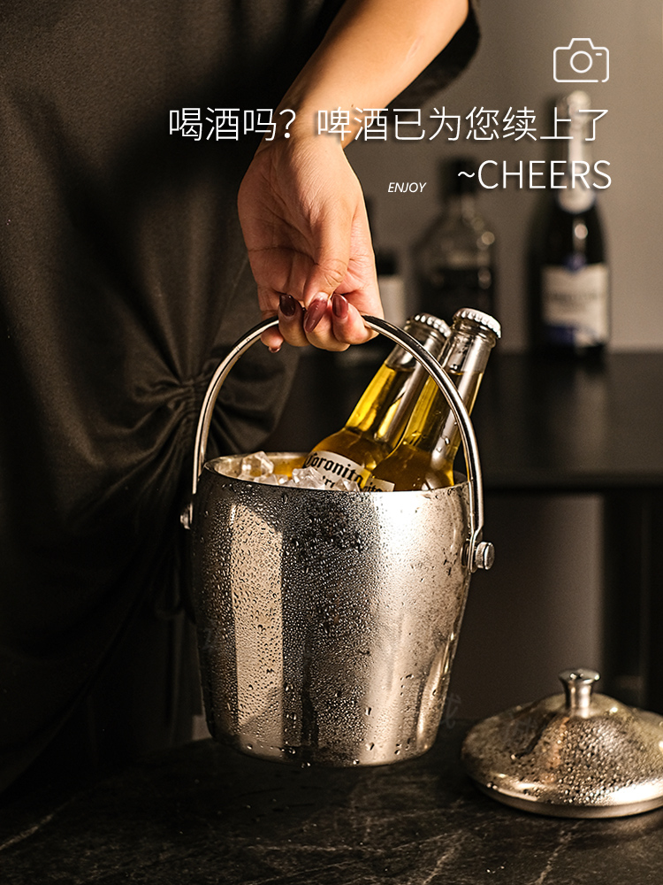 Double Layer Stainless Steel Ice Bucket Home Champagne Red Wine Ice Towns Barrel Storage Ice Insulated Barrel Thickened with lid ice Ice Grain Barrels-Taobao
