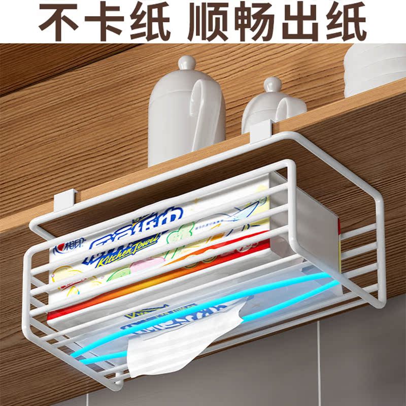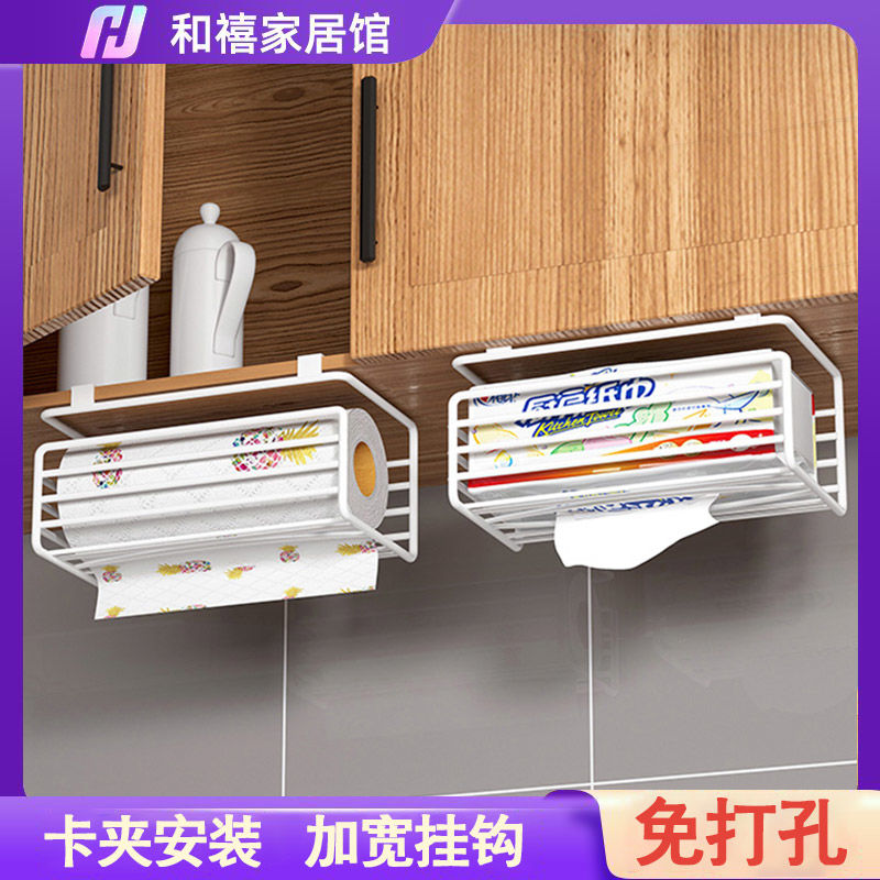 Kitchen Paper Towel Rack Free of perforated cabinets Lower hanging frame Multi-functional wet towels Toilet Roll of paper Cramps Racks Table-Taobao