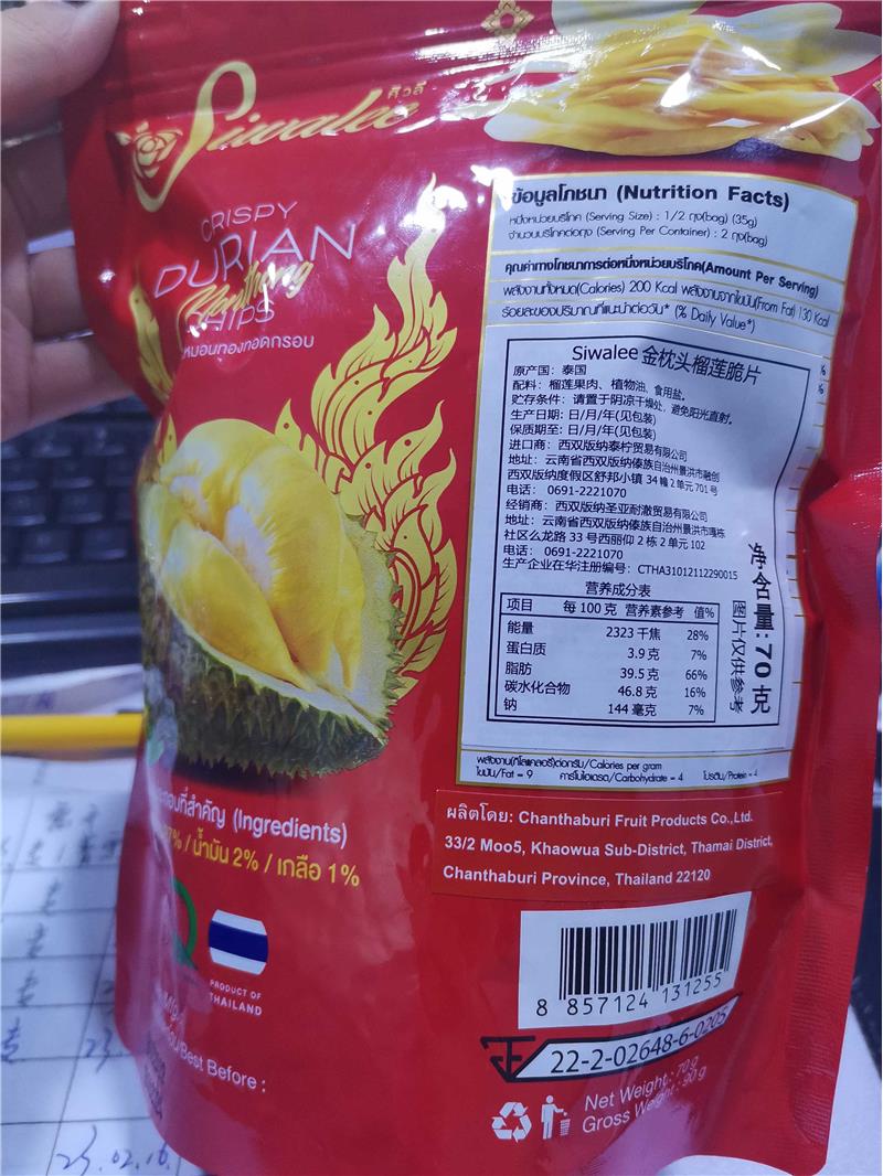 Thai imported durian crisp 70g Thai imported durian crisp 70gx2 bag Thailand imported durian crisp piece 70gx3 bag