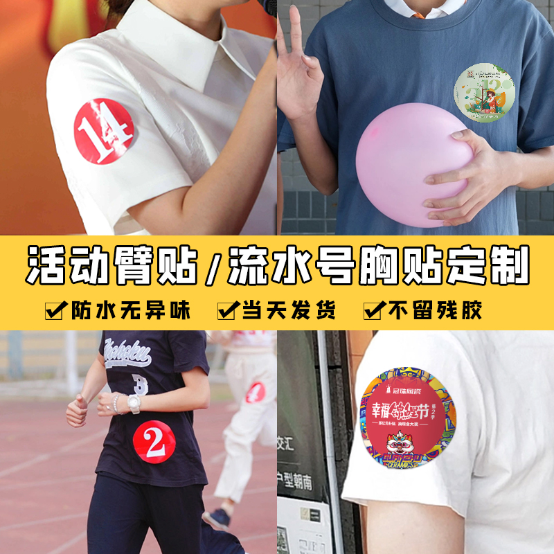 Active Arm Sticker Clothes Logo Sticker Custom Contest Number Plate Label Design Contestant Name Nameplate Group Building Class Badge School Badge Adhesive Company Meeting Team Group Digital Number Chest Sticker-Taobao
