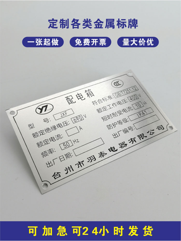 Custom made stainless steel copper aluminium metal nameplate corrosion machine equipment cable mechanical bed panel uv silk print-Taobao