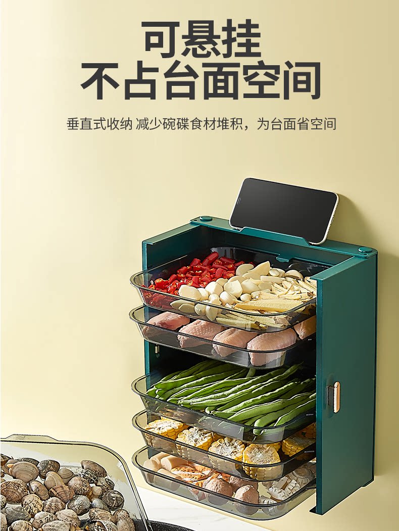 Kitchen Containing Wall Multilayer Dish tray Foldable hanging wall shelve free of perforated dish holder tray Tray God-Taobao