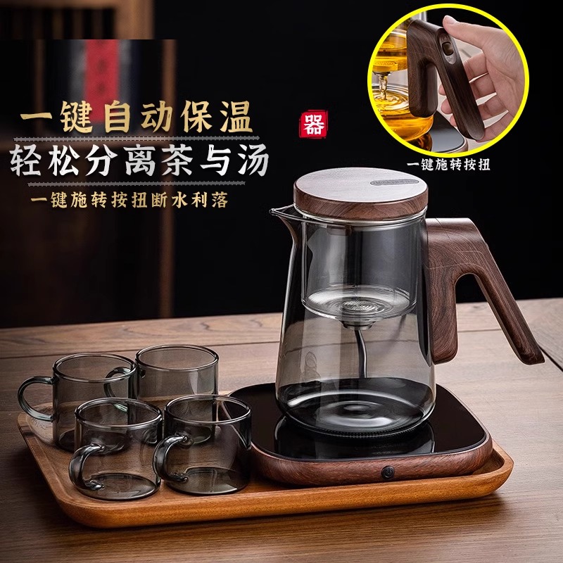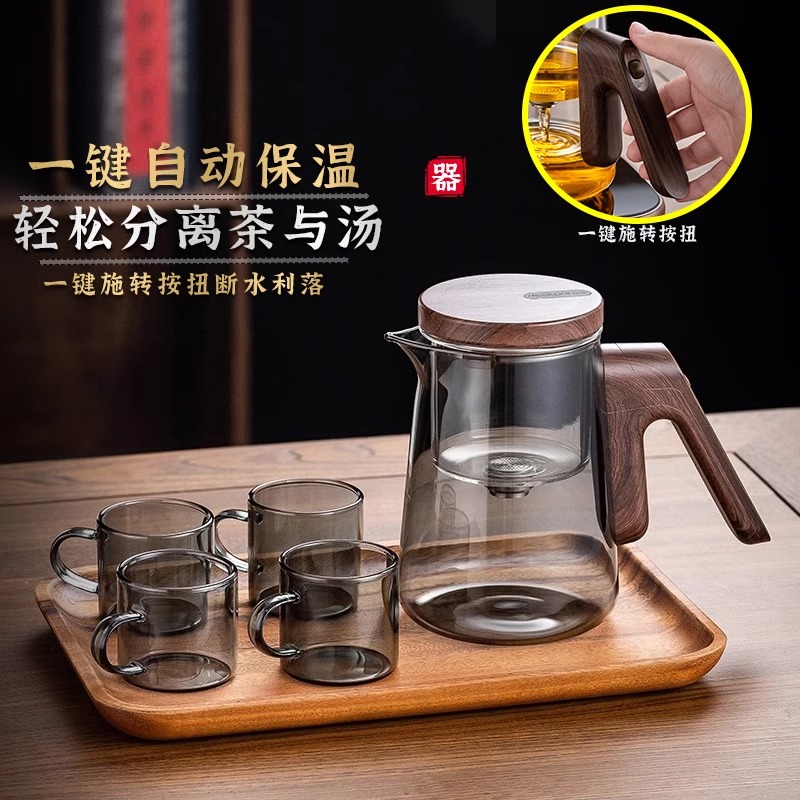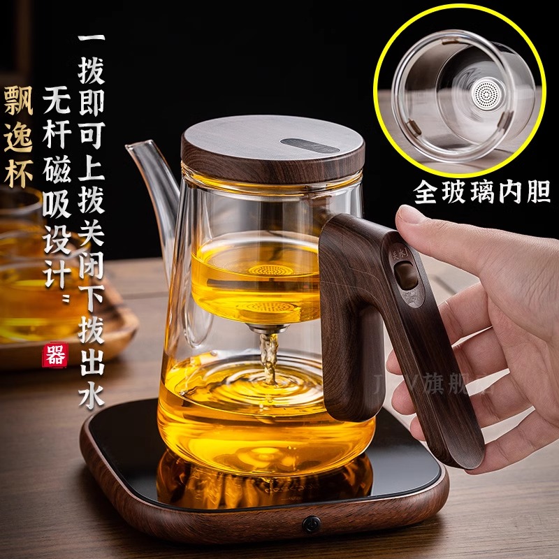Gold less magnetic suction flutter cup heat resistant glass liner tea water separation teapot key automatic tea set lazy person tea maker-Taobao