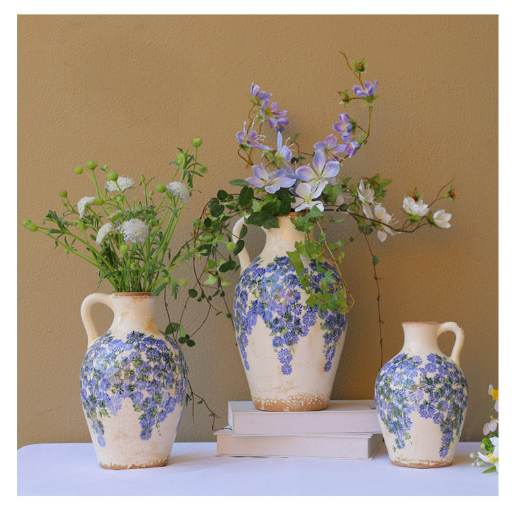 New Chinese hand painted retro Jingdezhen Qinghua Porcelain Vase Pendulum high level Sensation Living Room Flower Arrangement Emulation Flower Small-caliber-Taobao