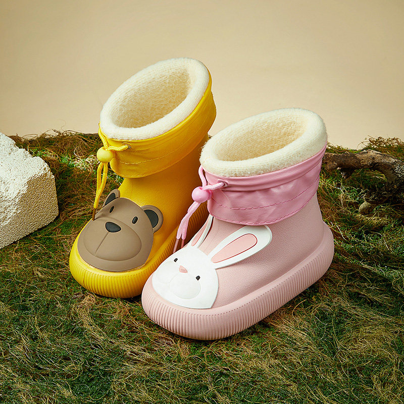 Rabbit Girl Rain Boots Add Suede Children Rain Shoes Woman 2023 New baby Water Shoe warm students anti-slip rubber shoes-Taobao