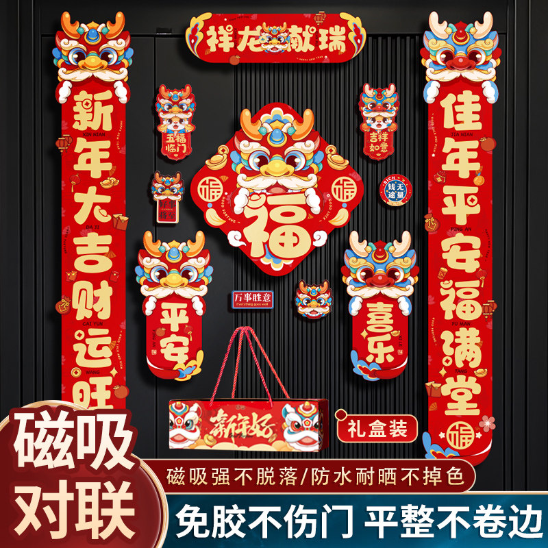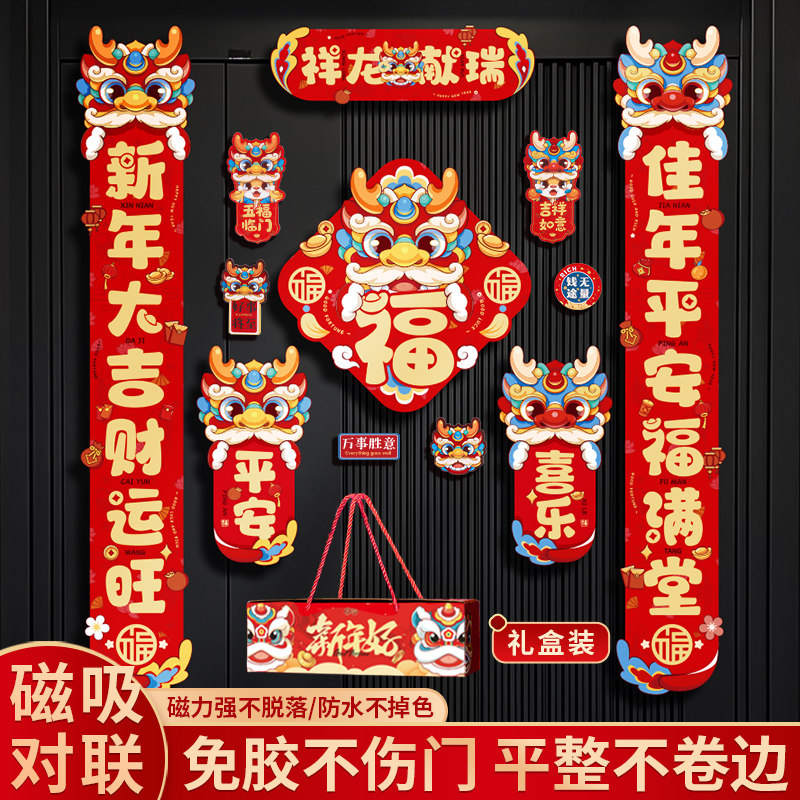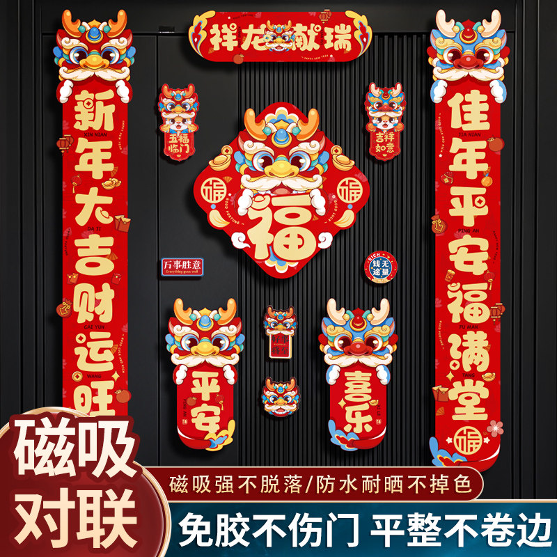 New Year's Magnetic Attraction to the 2024 new Dragon Year Spring Festival couplets for Chinese New Year's Lunar New Year's Eve Home Decorative Arrangement-Taobao