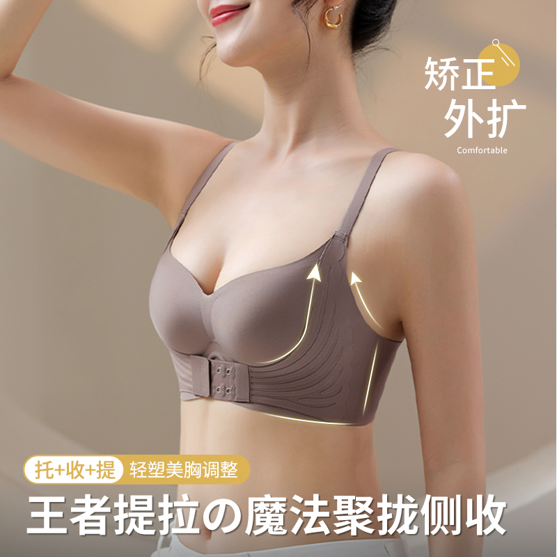 Front button lingerie woman small breasts gather autumn and winter anti-outer expansion without mark bra to receive the anti-sagging adjustment bra-Taobao