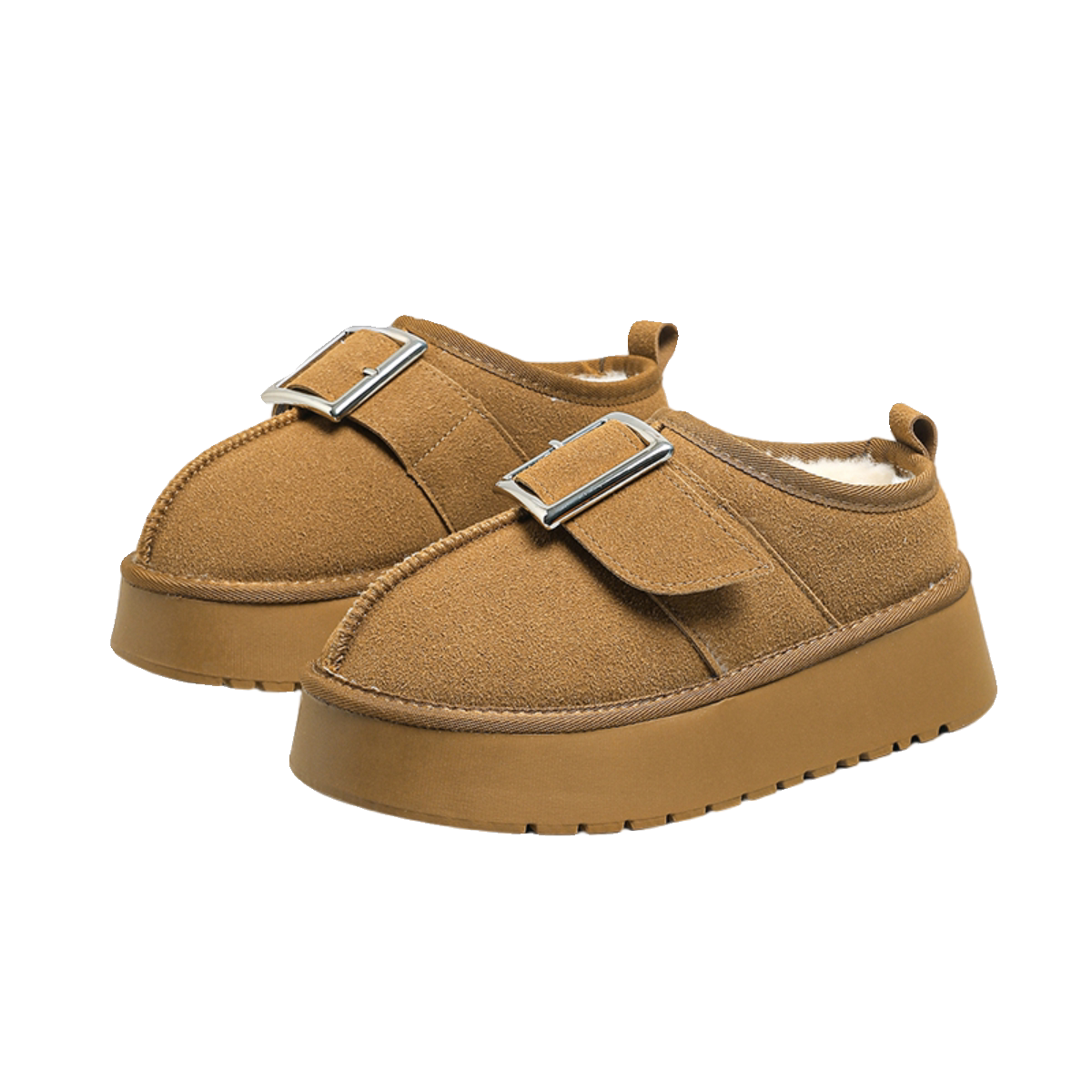Semi-towing snow boots woman 2023 Winter new thick bottom women's shoes genuine leather outwear slippers Outdoor warm fur shoes-Taobao