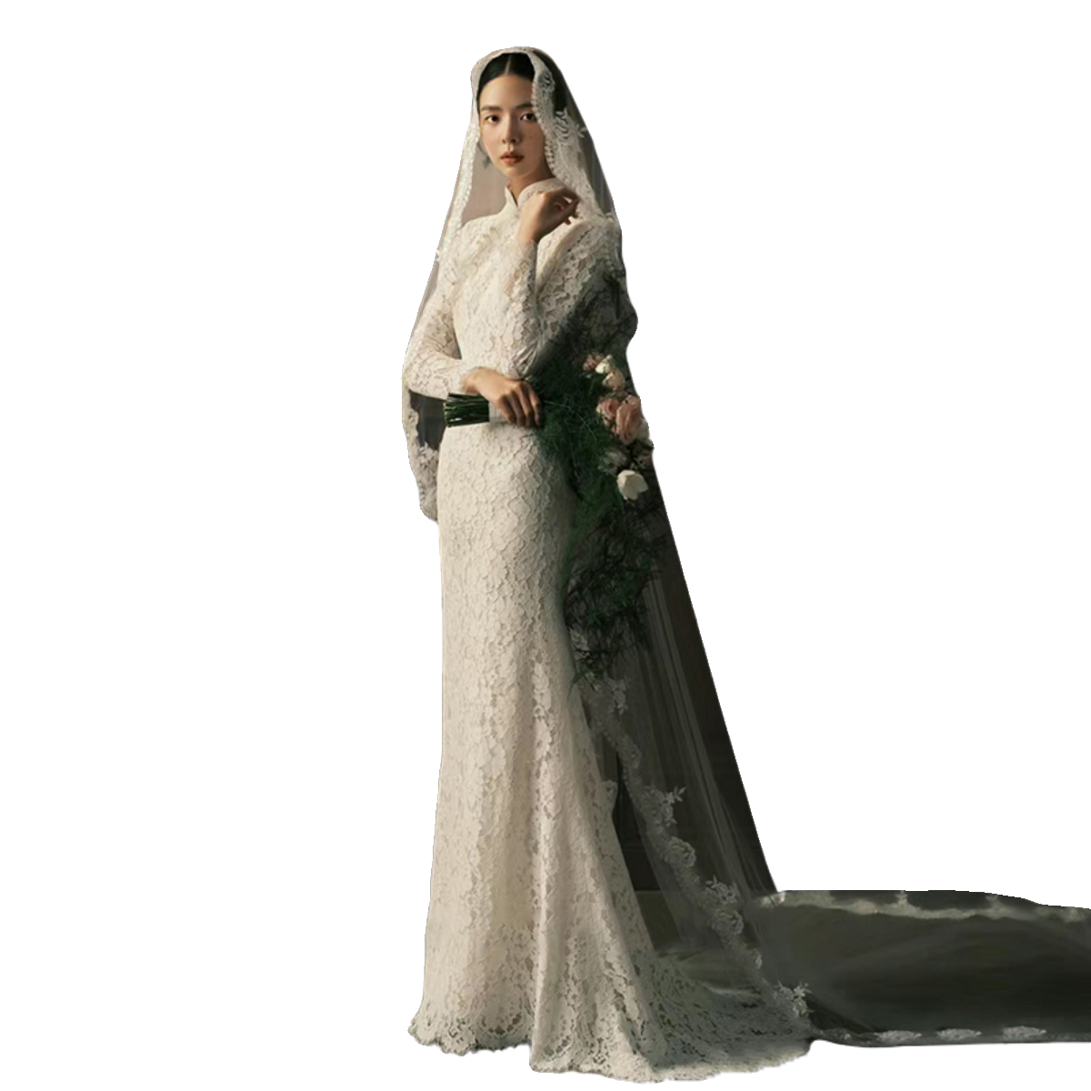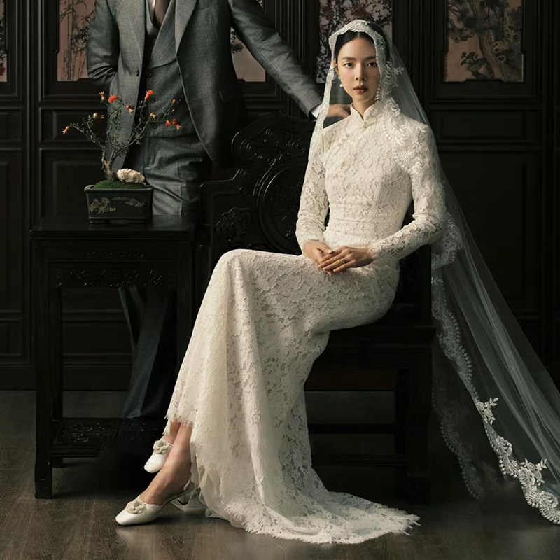 Lace Fishtail Light Wedding Dress New Chinese Vintage Betrothed Gown with Tail Skirt White Out of the Cockerel Qipao High-end-Taobao
