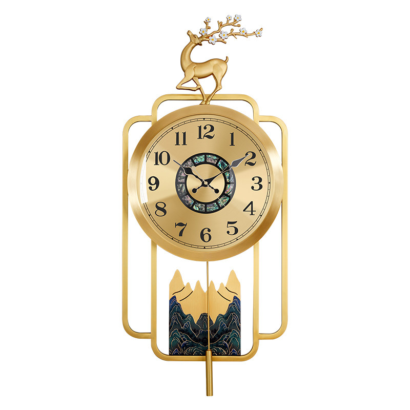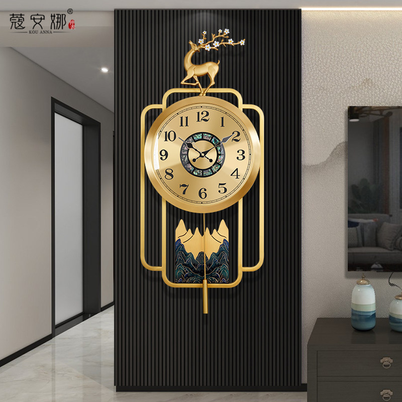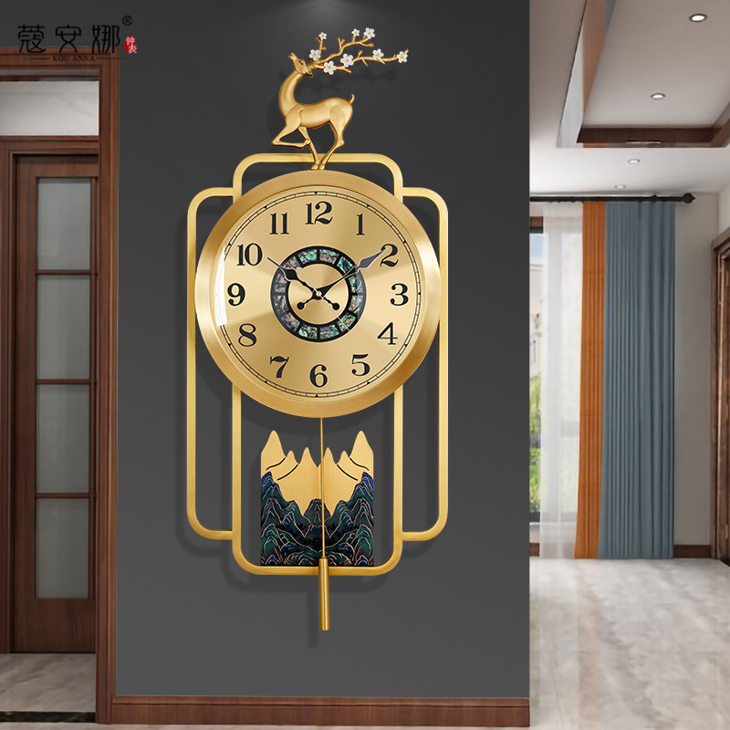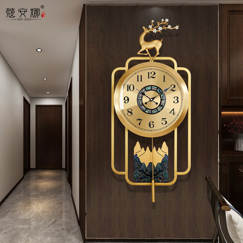 Brass hanging clock Living room New Chinese timepiece Home hanging wall silent clock light extravagant fashion new wall-mounted quartz clock-Taobao