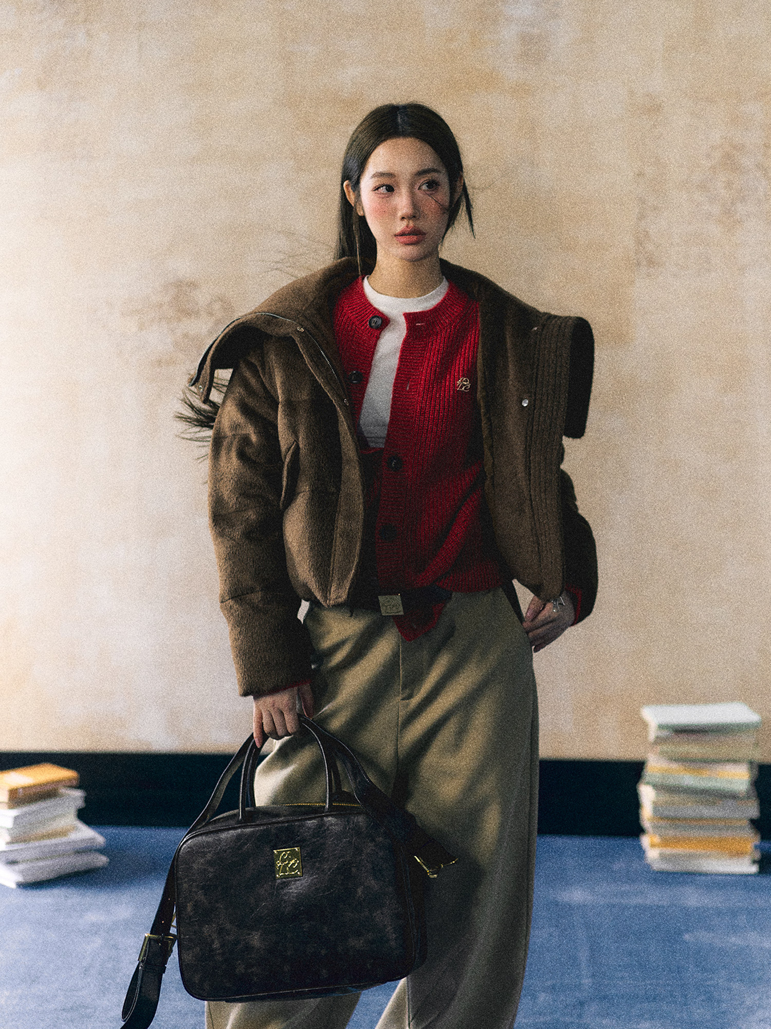 (LaluneDuCiel) LLDC 12 09 20:00 20:00 Lazy Wind Red Round Neckline Sweater-Taobao