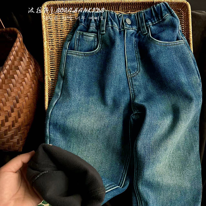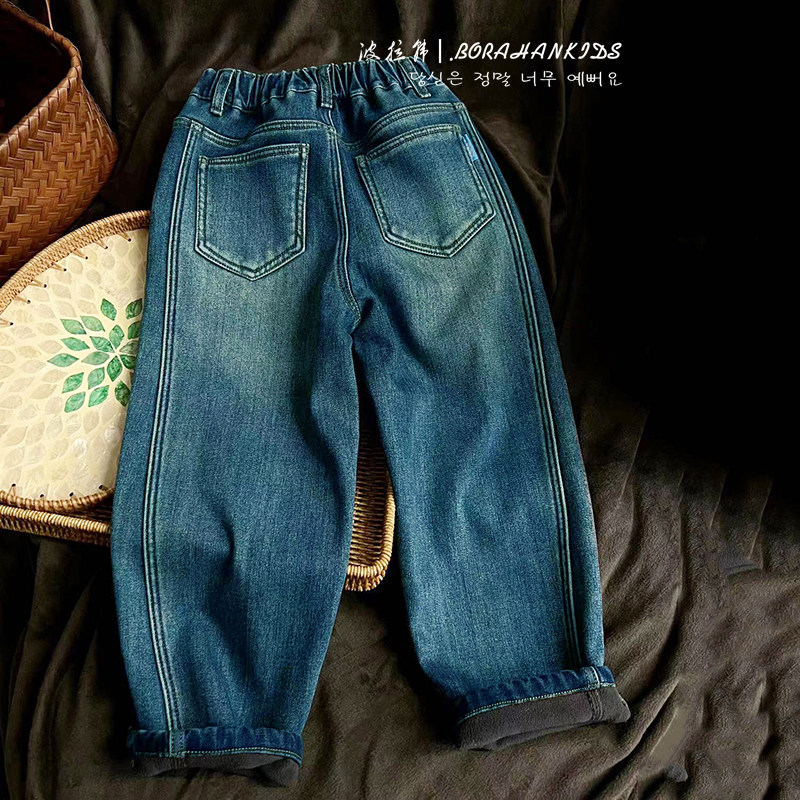 Pola Korean boy clothing girl gush jeans 2023 winter dress children old daddy pants CUHK children casual radish pants-Taobao