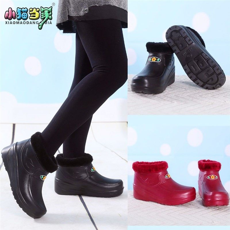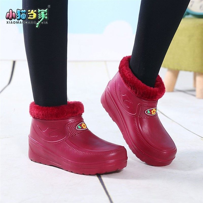 Glint Warm Shoes Non-slip Warm Waterproof Rain Shoes EVA Integrated Car Wash Kitchen Plus Suede Cotton Shoes Student Han Edition Boots-Taobao