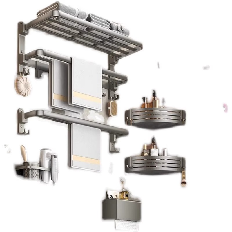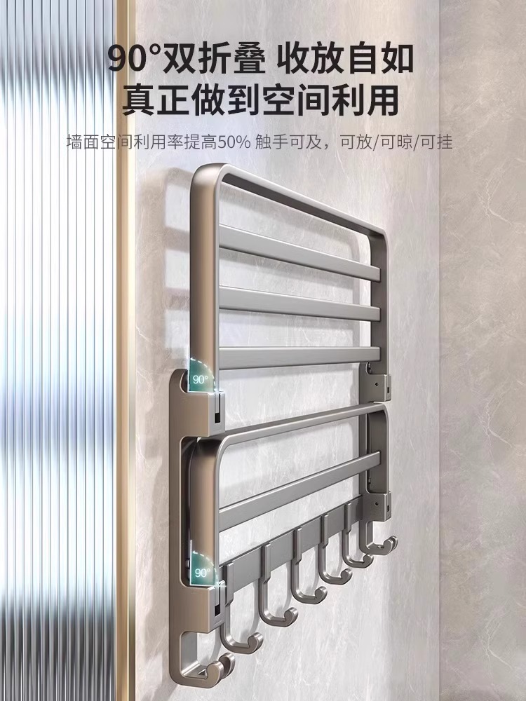 Gun Grey Bath Towel Rack Fur Towel Rack Foldable Free Punch Toilet Bathroom Toilet Shelf Wall-mounted Rack Bathroom-Taobao