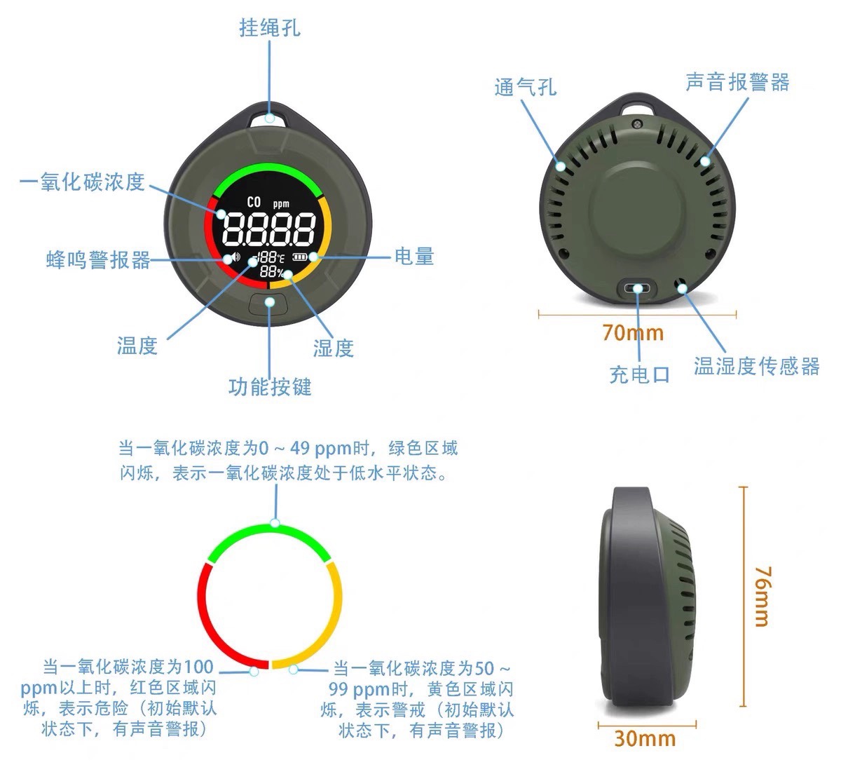 Test small fi carbon monoxide detector outdoor camping carbon monoxide alarm tent caravan ideal car section-Taobao