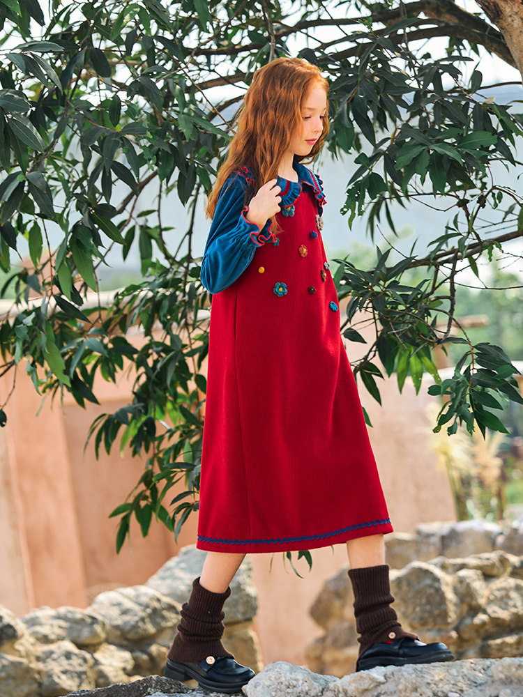 mpeng girl's autumn winter new red Christmas new year Mao's vest skirt college cute ladies' dress dress-Taobao