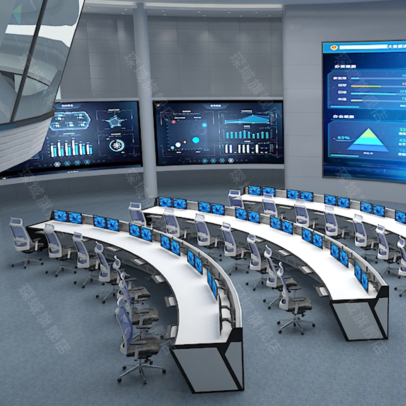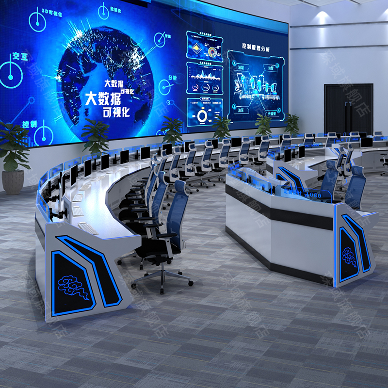 Chen Domain Spot Arc Command Center Console console Steel wood combined with technology sense Control room Security monitoring bench Triple splicing Multimedia digital center bench Scheduling Desk-Taobao