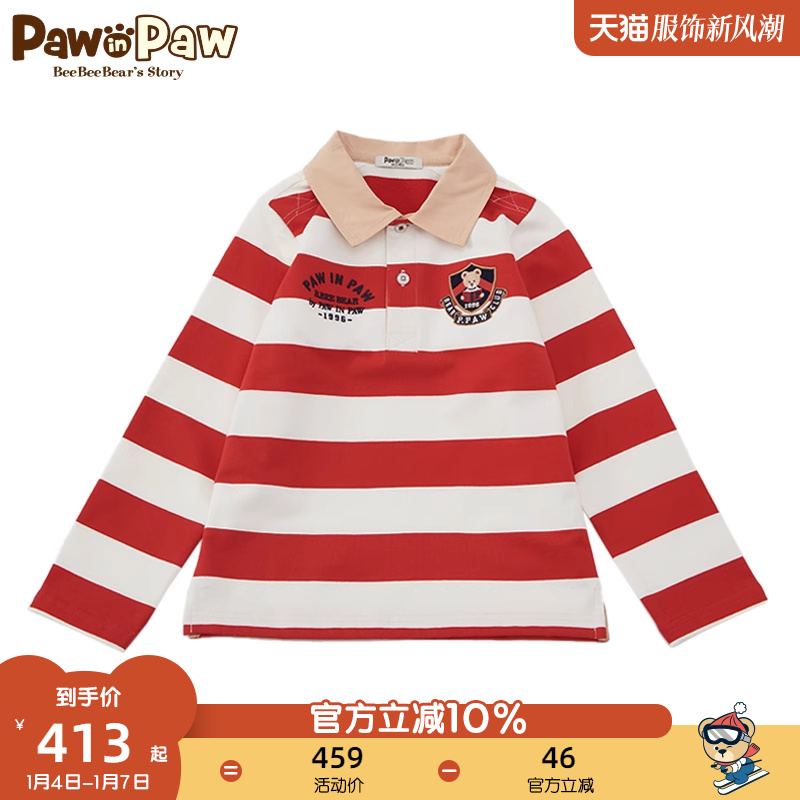 Pawn Paw cartoon Little Bear children's dress 2024 Spring new male and female children long sleeve T-shirt blouses-Taobao