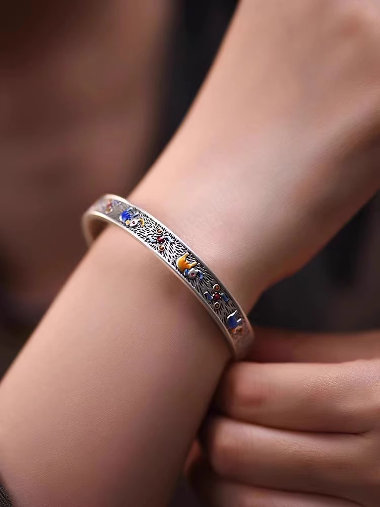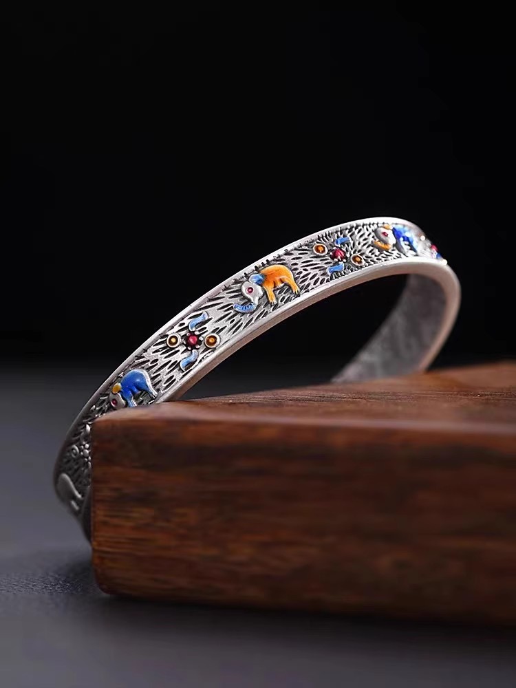 999 Superior Sense Auspicious Small Elephant Fever Blue Retro Hidden Silver Bracelet male and female lovers enamel color adjustable lovers' hands-Taobao