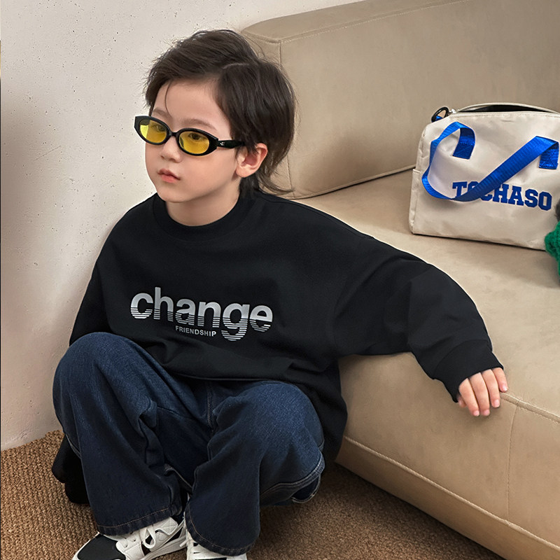 Chen Dae Pig Boy Long Sleeve T Shirt Child Clothing Letter Stamping Undercoat Autumn Winter New Children Loose Casual Blouse-Taobao