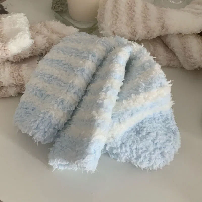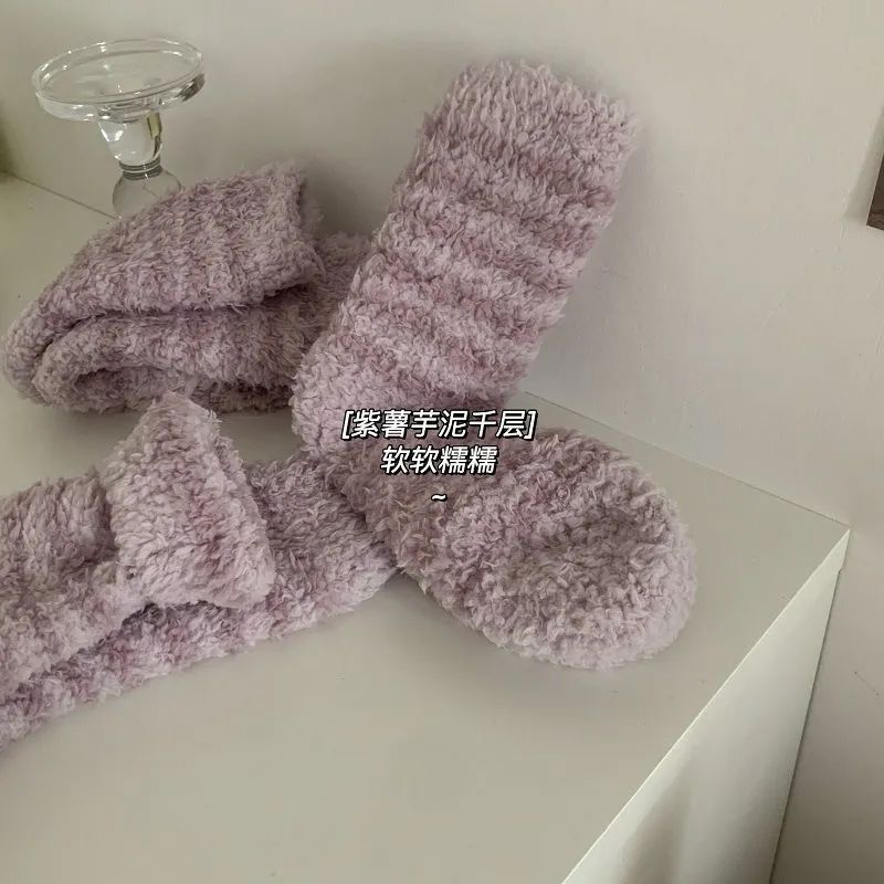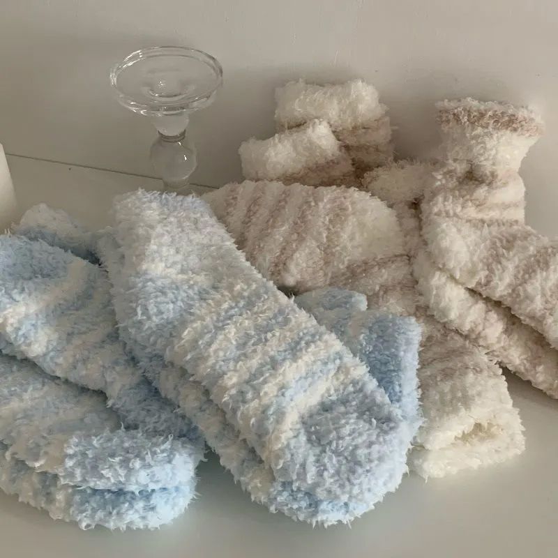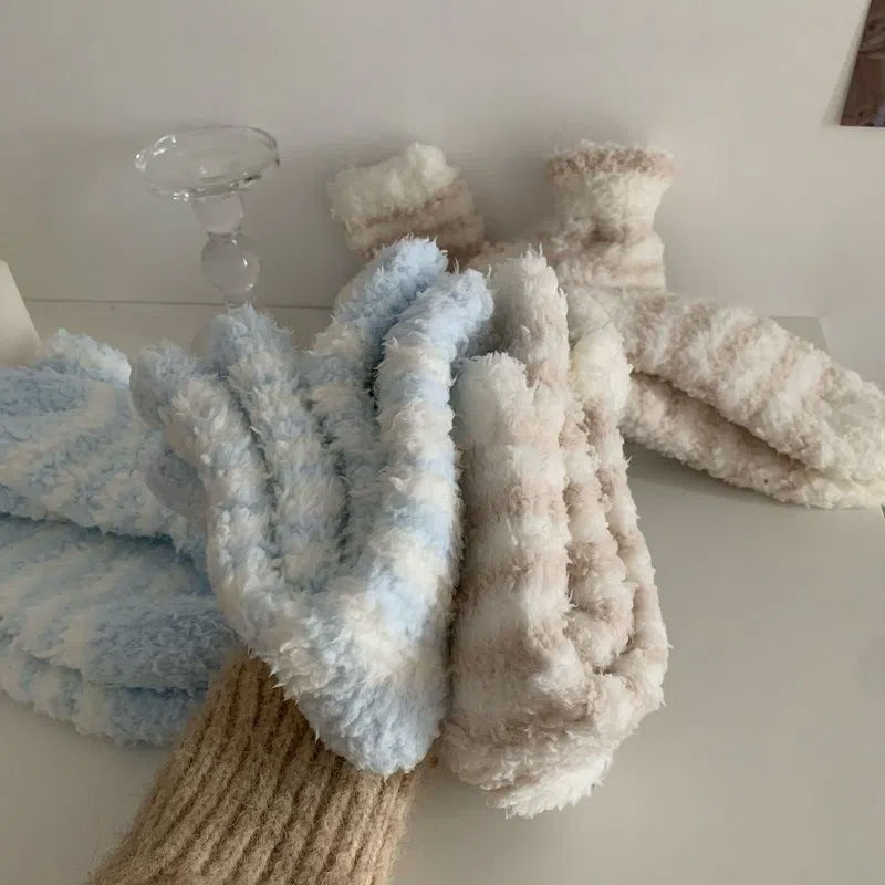 Lamb suede Sox children Japanese striped floor Sox sleep socks midbarrel socks autumn winter thickened warm home Coral Fleece-Taobao