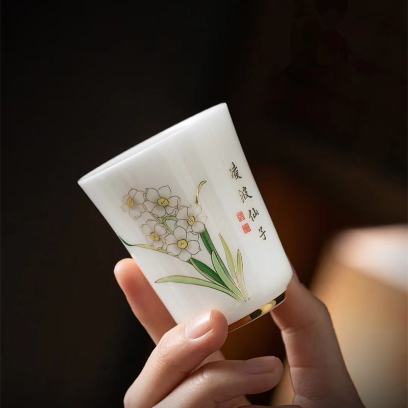 Water Fairy Flower Ice Seed Jade Porcelain Tea Set Group Defied White Porcelain Light Extravagant High-end Ling Polo Fairy Cover Bowl Refined Companion Gift-Taobao