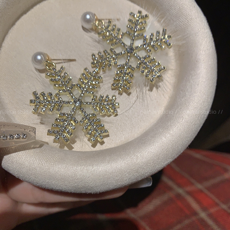 Snowflake Buffet Fur Ear Nails ~ New Year Super with atmosphere Sensation Flash Drilling Advanced Senses Autumn Winter Plush Suede Earrings Earrings-Taobao