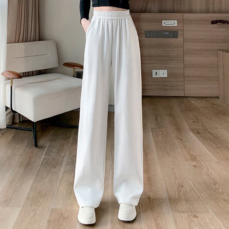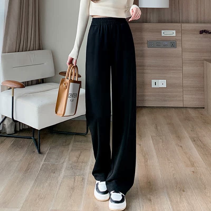 Narrow version knitted broadlegged pants woman spring autumn 2023 new high waist pituitary straight cylinder pants small sub casual sports pants-Taobao
