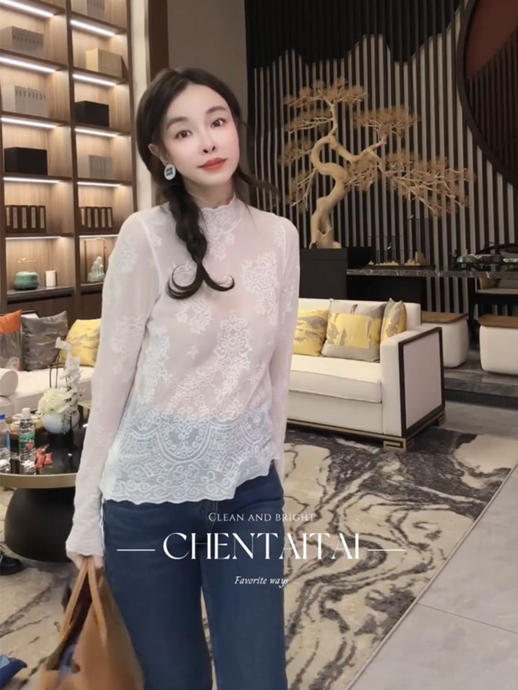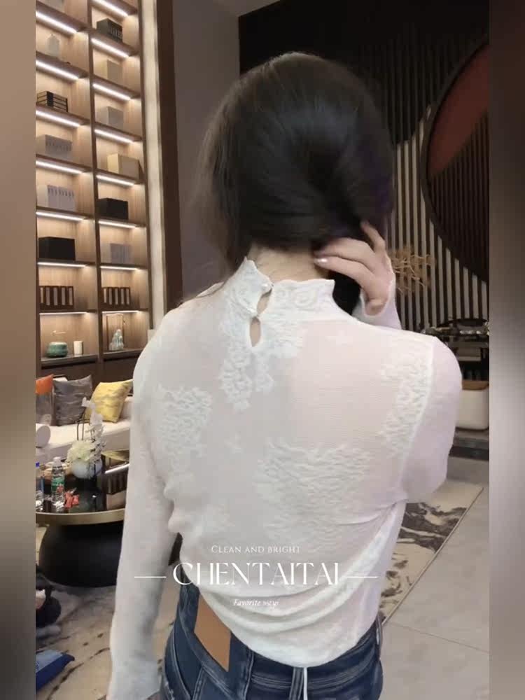 5566 Leaf European station water soluble wool lace sweatshirt 2023 autumn winter new hollowed-out knit inner hitch bottom-Taobao