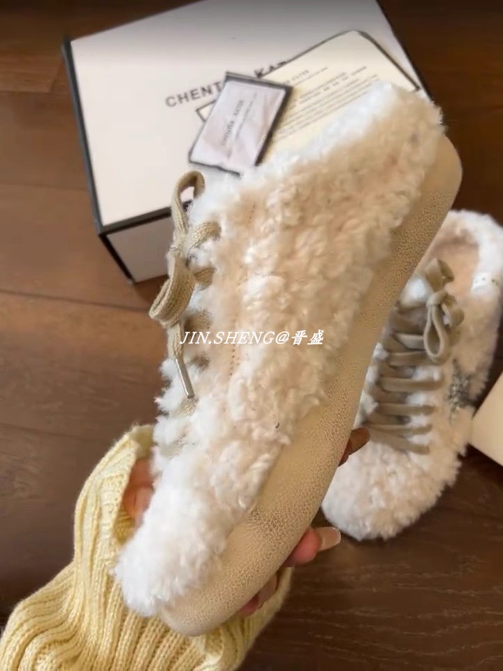 Lamb Hair Wool Baotou Shoes Woman Stars Shoes Winter New Gush Cotton Shoes Thick Bottom 100 Hitch Flat Bottom Outside Wearing Half Slippers-Taobao